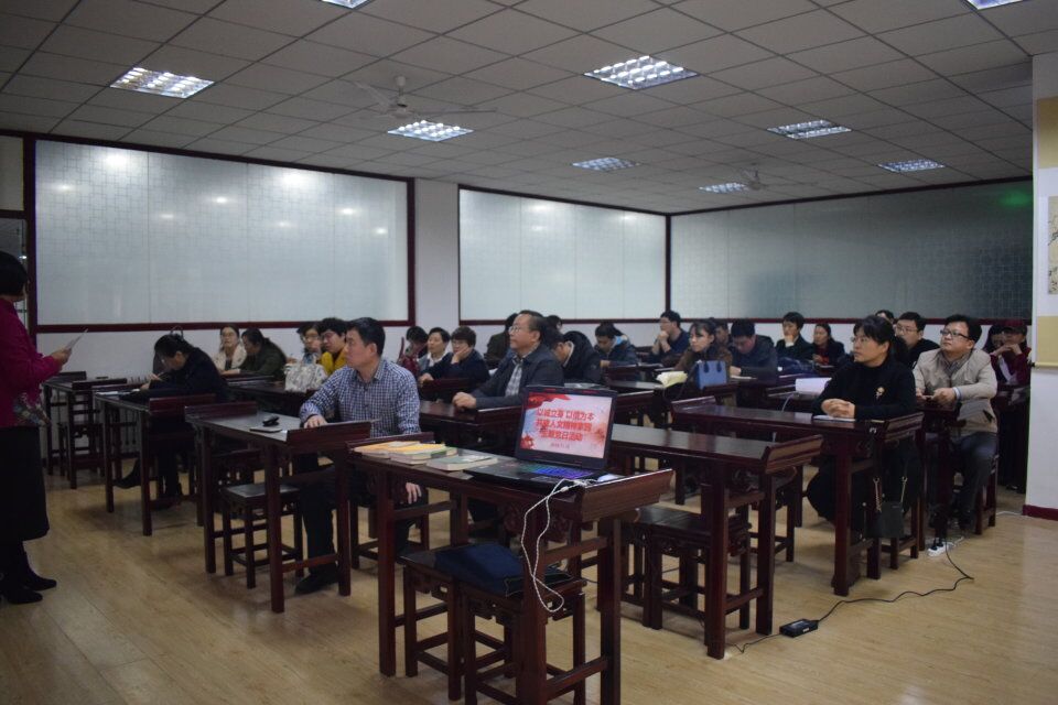 党总支书记祝茂凯希望全体教工党员要加强对传统文化的了解,以诚立身,以信为本,积极发挥专业所长,投身国学研究院的建设工作,传播传承国学,共建人文精神家园。