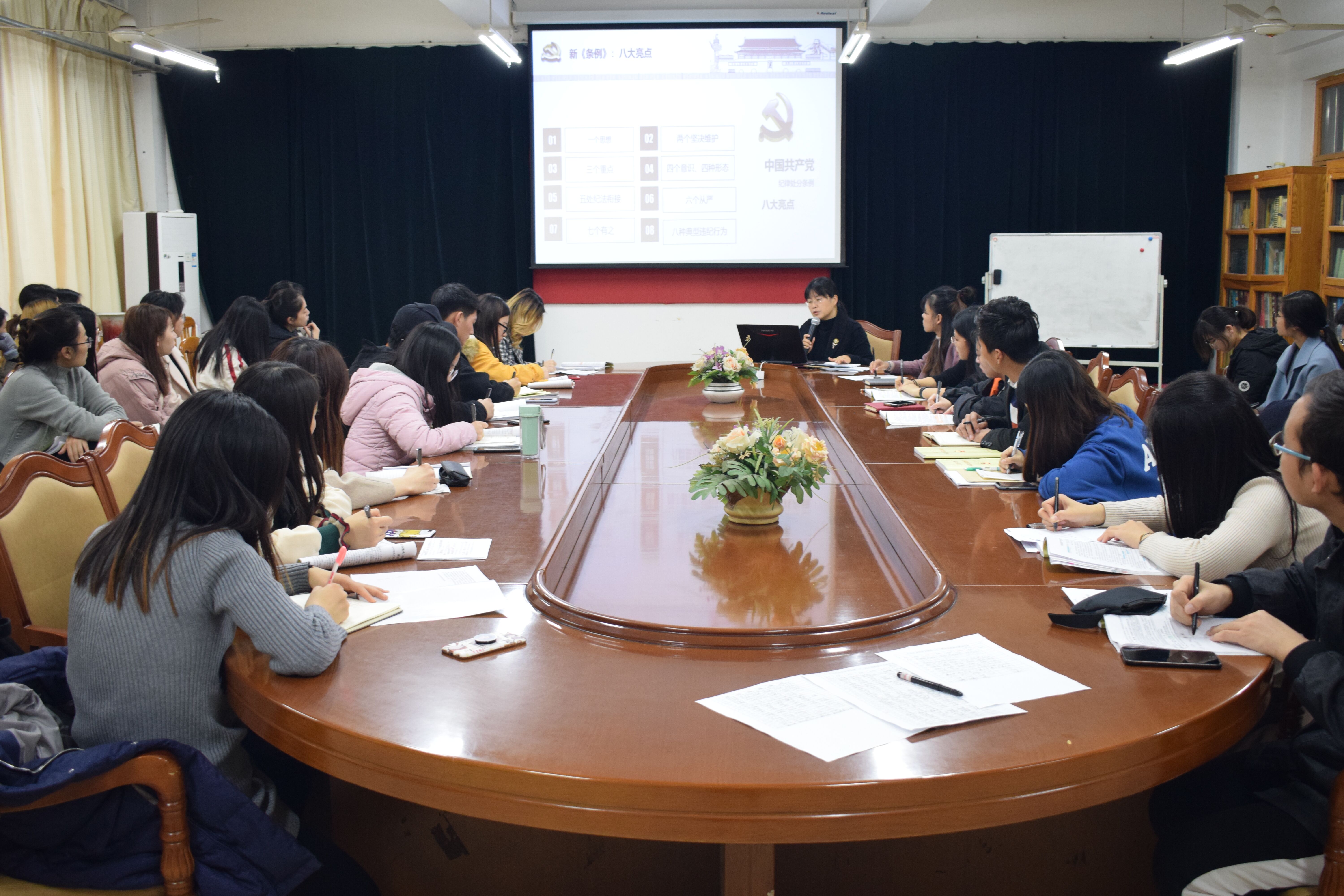 11月17日,青岛农业大学人文社会科学学院2018年下半年党员拟发展对象和第23期入党积极分子培训班在文经楼资料室进行。学院党总支副书记、副院长张胜芳为入党积极分子和党员发展对象上主题为“《中国共产党纪律处分条例》学习与解读”专题党课辅导报告。会议由辅导员徐璐主持,学院入党积极分子和党员发展对象与会。