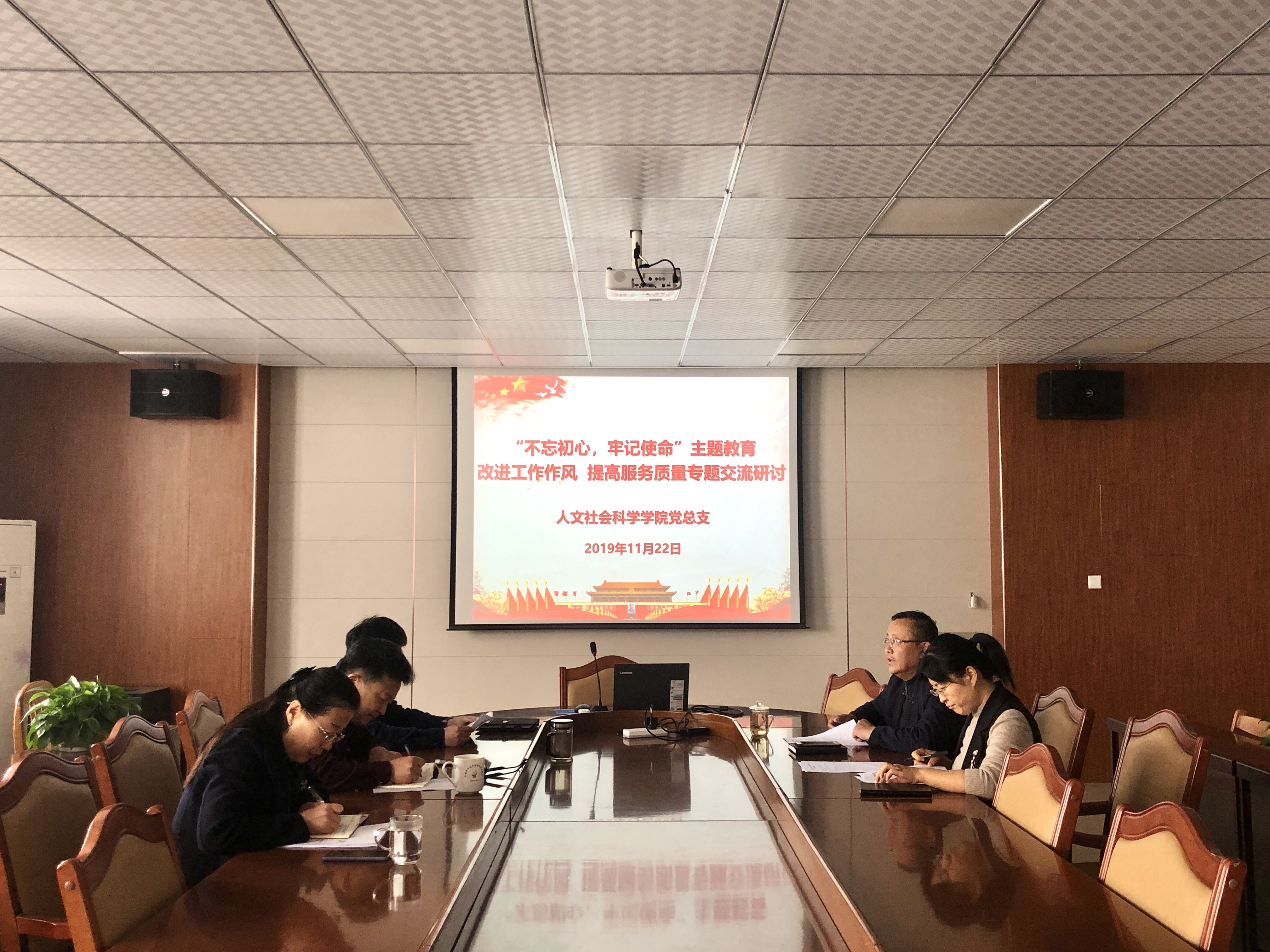 11月22日,青岛农业大学人文社会科学学院召开“不忘初心、牢记使命”主题教育交流研讨会,会议由党总支书记祝茂凯主持,学院领导班子参加会议。