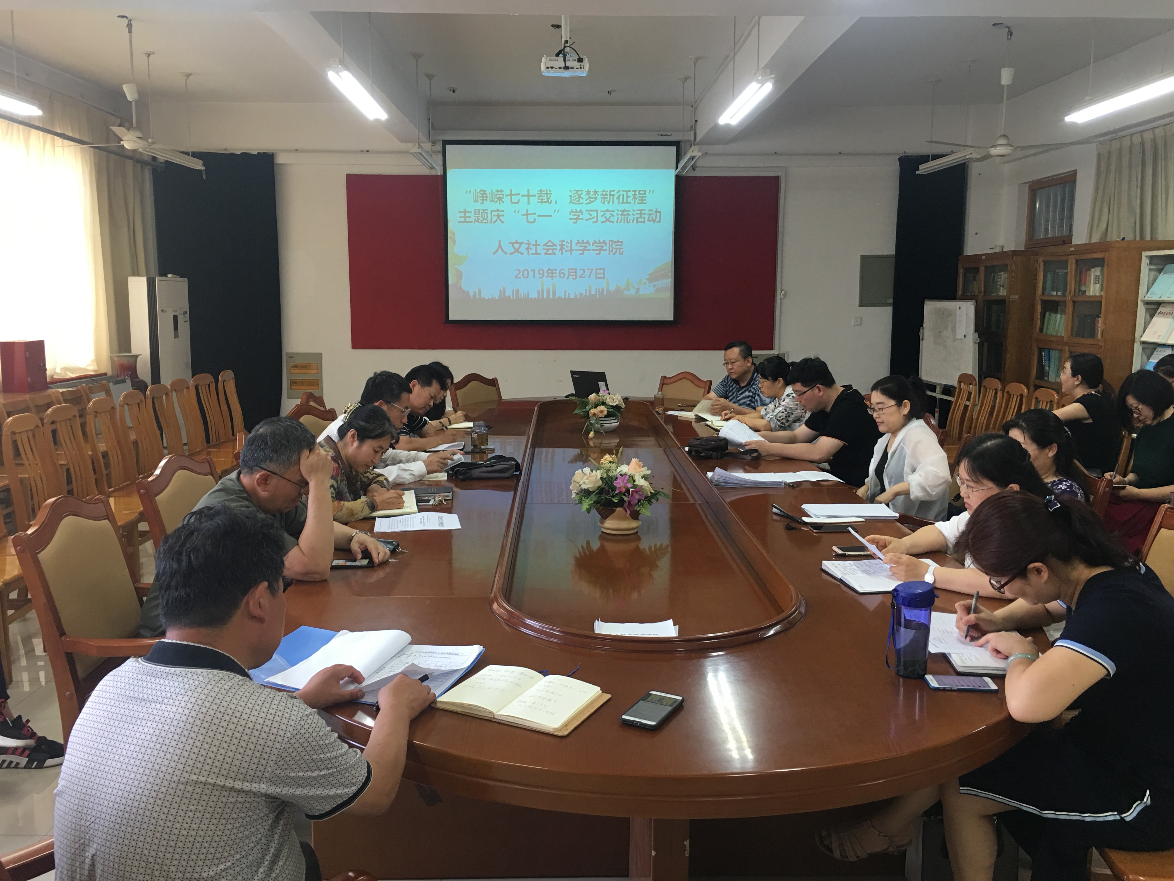 6月28日,青岛农业大学人文社会科学学院召开“峥嵘七十载,逐梦新征程” 主题庆“七一”学习交流活动。党总支书记祝茂凯主持会议,全体教职工与会。