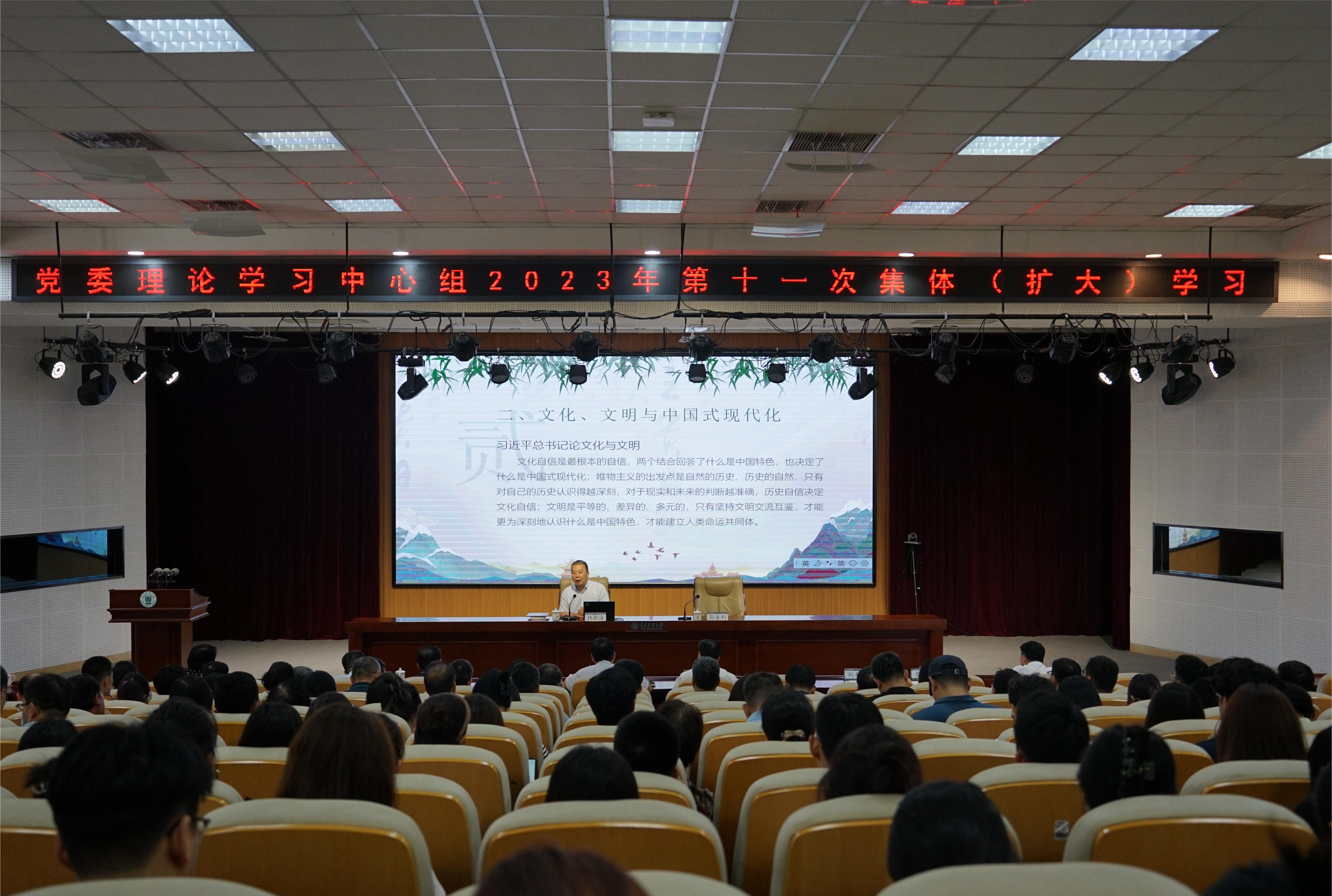 韩毓海以“文化、文明与中国式现代化”为题,为学院师生作马克思主义与中国优秀传统文化相结合专题辅导报告。韩毓海从习近平新时代中国特色社会主义思想前所未有的开创性讲起,旁征博引,娓娓道来,为师生阐释了文化自信为何是最根本、最持久的自信,解答了什么是中国特色,什么是现代化等一系列重要问题,理清了中国式现代化与中华文明之间的关系。韩毓海教授的讲座内容详实,案例丰富,政治站位高,文化视野开阔,带领师生们追溯、探寻了中华五千年历史文明,领略了中华优秀传统文化的魅力,鼓励大家厚植文化自信,筑牢文化根基,坚定不移地走中国特色社会主义道路。