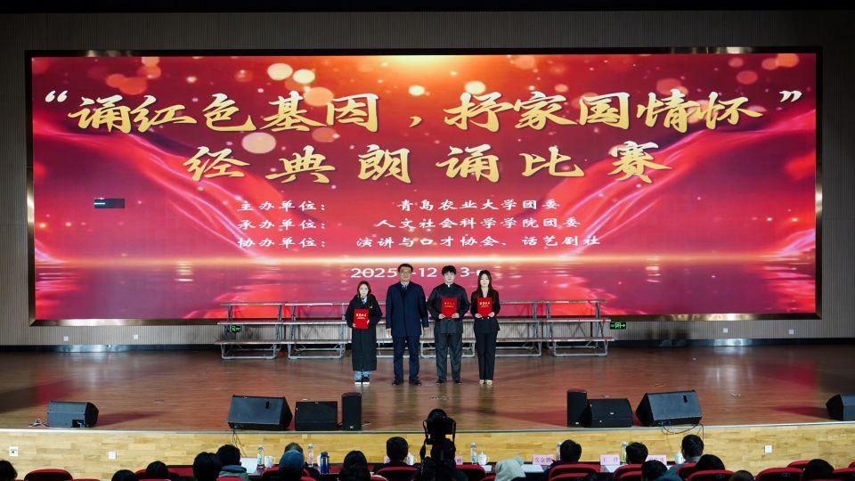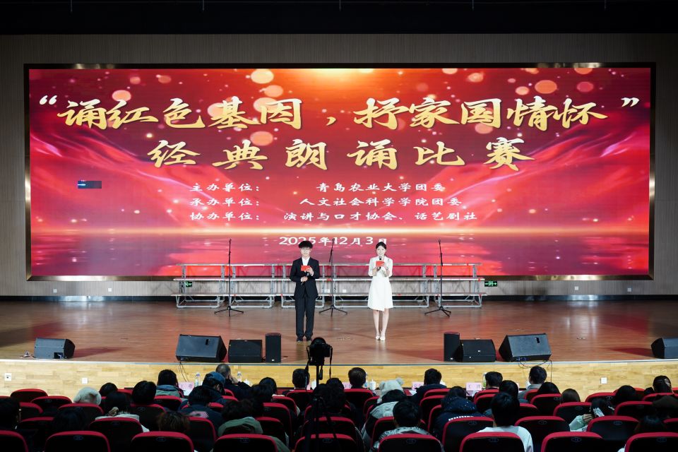 为传承红色基因、厚植家国情怀,深化青年理想信念教育,12月3日,由青岛农业大学团委主办、人文社会科学学院团委承办的“诵红色基因,抒家国情怀”经典朗诵比赛决赛在平度校区大学生创业中心报告厅举办。活动启动以来,全校学生热情参与、积极备赛,经初赛选拔,最终10支代表队晋级决赛。