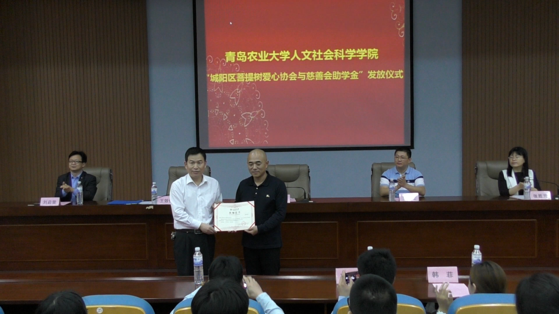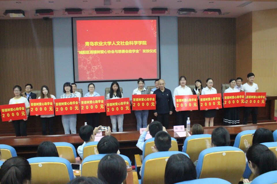 为助力学生成长成才,今年三月,城阳区菩提树爱心协会捐资2万元,在人文社科学院社会工作专业设立城阳区菩提树爱心协会与慈善会助学金,资助家庭经济困难的社工专业优秀学生10人,每生资助2000元。