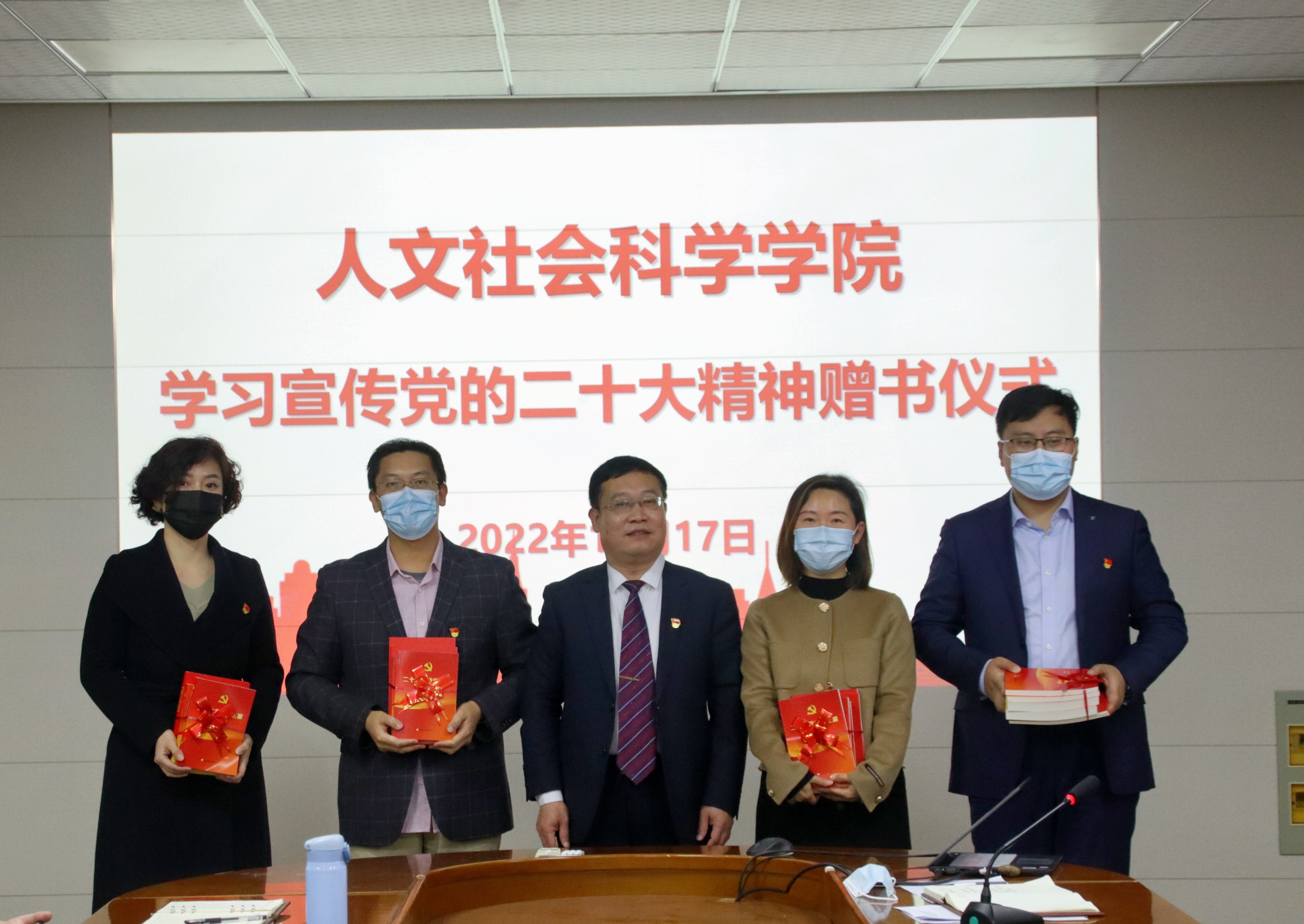 11月17日,青岛农业大学人文社会科学学院组织开展党的二十大精神学习宣讲并举行学习宣传党的二十大精神授书仪式。会议由学院党委书记徐以师主持,学院党政班子成员及全体教职员工参加学习。