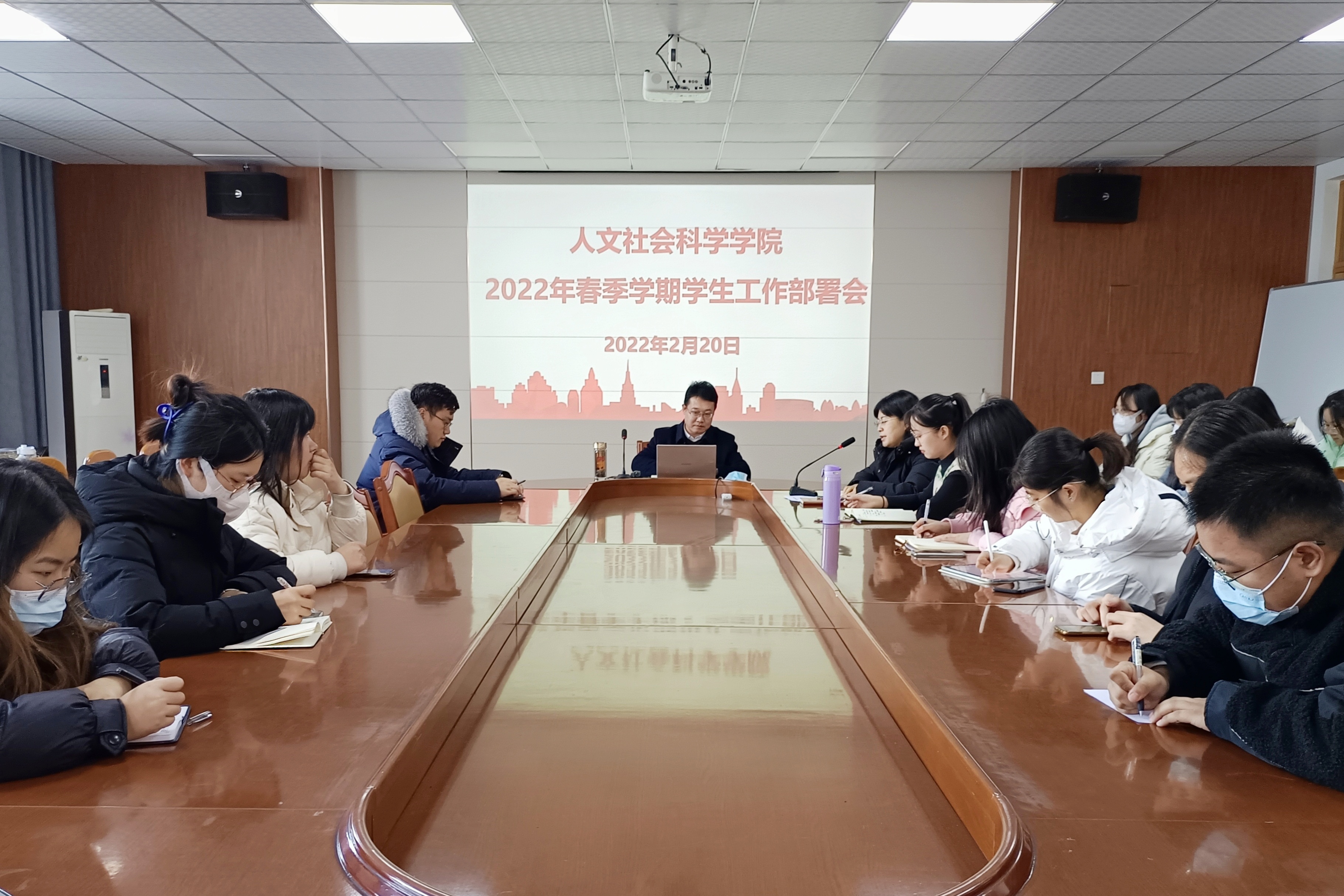 2月20日,青岛农业大学人文社会科学学院召开2022年春季学期学生工作部署会。党总支书记徐以师出席会议,党总支副书记张胜芳主持会议,正科级辅导员曹斯亢、辅导员史雪及全体学生干部参加会议。