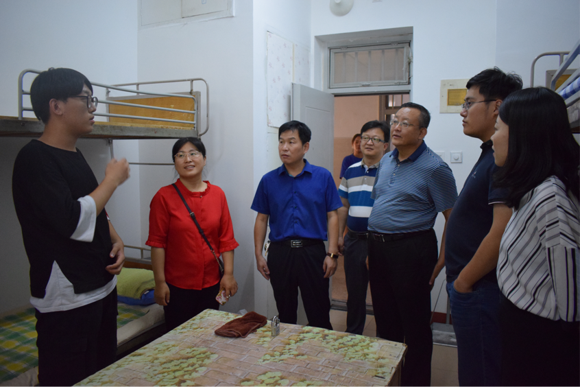 31日上午10时,校党委书记李宝笃、校长宋希云、校党委副书记王庆军、校党委副书记单连岱等校领导来到人文学院新生报到处视察学院迎新工作,并亲切慰问了工作人员、报到新生以及家长们。31日下午,学院领导班子成员还陪同校党委副书记单连岱走访新生宿舍,第一时间给予新生最真挚的关怀。单书记与新生们进行了亲切的交谈,了解新生报到及入住宿舍的情况,强调安全第一,同时希望每位新同学营造良好的宿舍氛围,并尽快适应大学生活,以饱满的热情迎接接下来的大学生活。