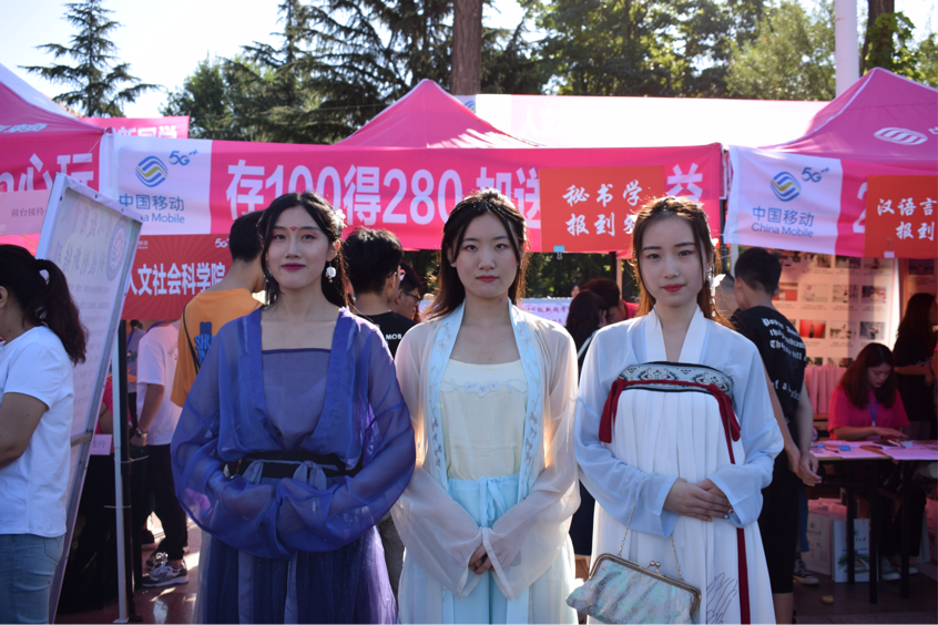 为了更好地服务新生,展现人文特色,弘扬中华优秀传统文化,学院依据自身专业特色,设计了一系列具有深厚人文底蕴的迎新活动:19级新生人手一本学院的文化手册,该手册系统梳理凝练出学院的办学宗旨、办学理念、院训等,设计出学院院徽,透过手册使19级新生充分了解人文学院的历史和特色,跟是拉近了新生对学院的情感认同和文化认同;学院报到处“有朋自远方来,不亦乐乎”充满古香古色味道的水墨画展板亮眼夺目;枚枚书签上一行行温情动人的祝福语,蕴含着人文学子之间永恒的关怀;身着汉服的人文姑娘,将古典文化呈现在新生及家长面前,展现出人文学院独特的风采。