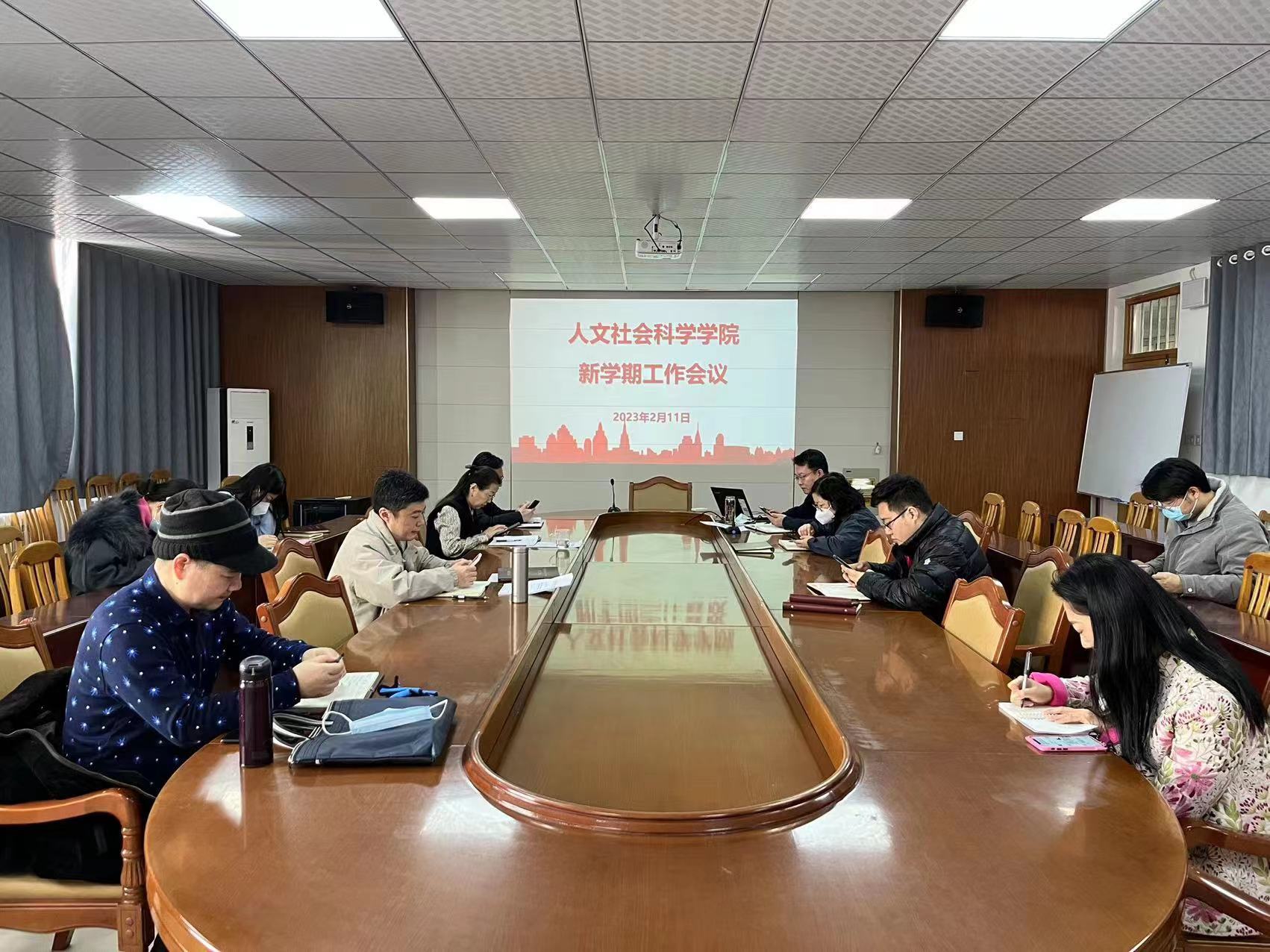 2月11日,人文社会科学学院召开新学期工作会议。会议由学院党委书记徐以师主持,全体教职工通过线上线下结合的方式参加会议。