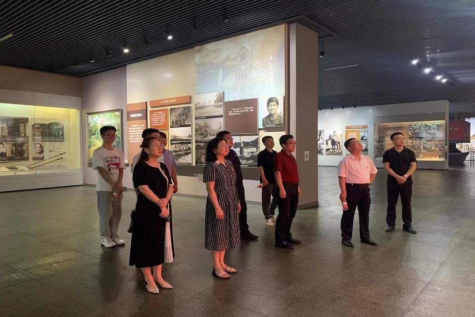 7月13日上午,考察组走进王羲之故居,了解一代书圣成长之路,领悟书法艺术真谛,感受中国传统文化的博大精深、源远流长。在沂蒙革命纪念馆,徐以师带领党员们重温入党誓词,接受革命传统教育。大家充分了解了沂蒙人民坚定信念跟党走,挺身而出、投身革命的红色历史。随后考察组到访临沂市天元建设集团进行参观学习。学院考察组在集团人力资源部赵新明总经理等人的带领下,深入了解了天元集团的发展历程和取得的丰富成果,集团面向未来积极探索,深入实施产业振兴和文化振兴战略,以奋发有为的精神状态和脚踏实地的针对性举措助力乡村振兴。在接下来的座谈交流中,双方分别介绍了党建工作开展情况及特色亮点,就工作心得及经验进行分享,共同促进提高党建工作水平,创新工作方式。