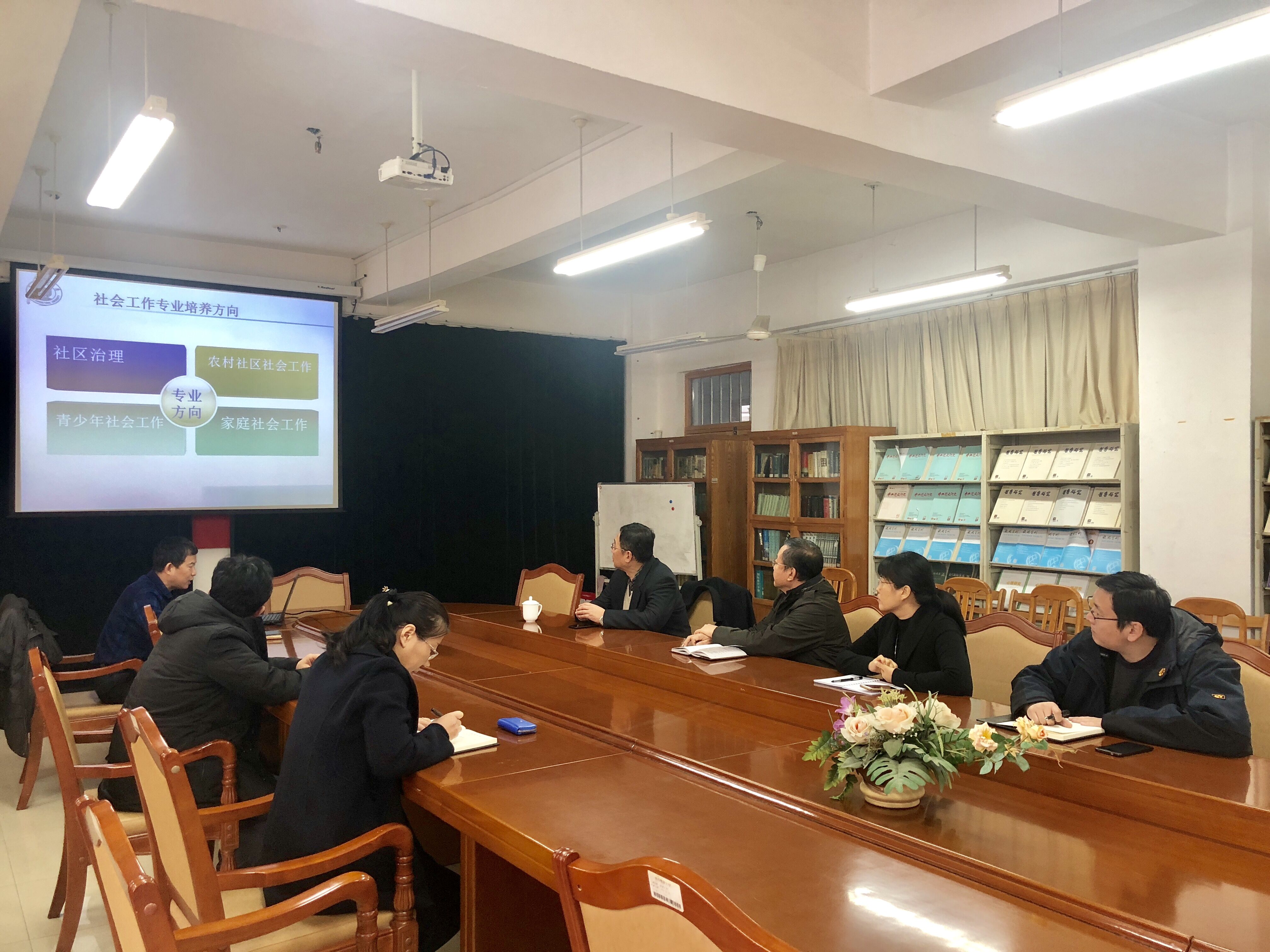 人文社科学院院长王效仿汇报了学院社会工作硕士专业学位硕士点(MSW)申报工作的进展。王庆军副书记认真听取了汇报,充分肯定了人文社科学院的工作和取得的成绩。他指出,人文社科学院要进一步增强使命感和责任感,在农业高校中要以更高的视角定位和谋划学院发展。对今后的学科建设等工作,王庆军提出三点要求:一是要统一思想,坚定信心,举全院之力申报硕士点。班子成员要齐心协力,分工明确,把申报硕士点作为推进学院学科建设的重要契机。全院上下要凝心聚力,内部挖潜,外部整合,传导压力,奋勇争先。二是要以学科建设为统领,积极谋划,全面推进学院发展。王庆军副书记指出,规划学科建设,实现由弱变强,是这一届班子的重任。班子成员要有战略眼光,在学科建设的道路上把方向,谋大局,认真落实学校二次党代会精神,将工作落实做细。三是强化价值引领,不断提升教师队伍综合素质。立德树人是高校的根本任务。人文社科学院在立德树人工作中承担重要的使命。学院要加强对教师的价值引领,提升其思想境界,进一步增强对学校、学院的认同度和向心力;要引导教师积极走出去,拓宽视野,不断提高专业素质和学术素养;要进一步健全科研激励机制,充分调动教师科学研究的积极性,提高学院创新能力和科研实力。