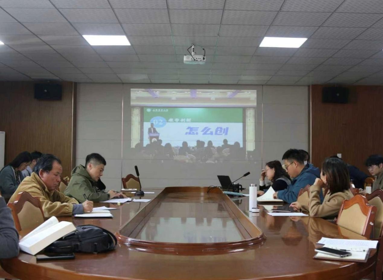 会上,全体教职工集体收看山东省普通高等学校教师教学创新研讨培训会暨2025年度山东省高校教师教学创新大赛总结大会直播,学习全国高校教师教学创新大赛一等奖获得者的经验分享。会议还集体学习了习近平总书记给中国农业大学全体师生的回信、《习近平:推动落实全球发展倡议、全球安全倡议、全球文明倡议、全球治理倡议》《习近平文化思想学习纲要》——建设具有强大凝聚力和引领力的社会主义意识形态等内容。