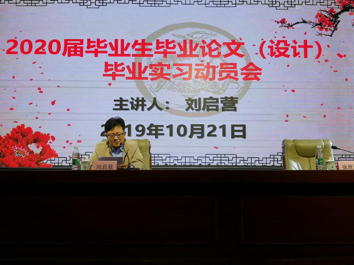 会上,刘启营主要从两个方面进行讲解:一是毕业论文(设计)工作的流程和要求。要做到选题新颖,规范论文格式并按期提交毕业论文。他特别强调,要坚决杜绝论文学术不端问题。二是介绍了毕业实习工作的安排和要求。建议同学们采用自主选择实习单位的方法,直接到单位或高校实习。刘启营要求,全体2020届毕业生要高度重视毕业论文(设计)和实习工作,听从学院的各项任务安排,确保保质按时完成毕业实习工作。
