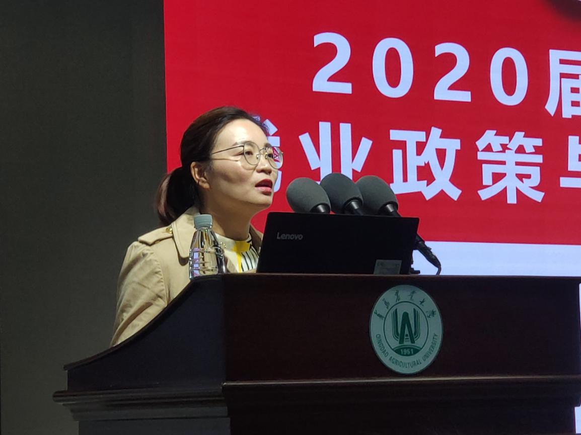 10月21日,青岛农业大学人文社会科学学院召开2020届毕业论文(设计)、毕业实习动员会及就业政策宣讲会。本次宣讲会由人文社会科学学院副院长刘启营,学工部就业服务指导中心吕国莹主讲。会议由党总支副书记、副院长张胜芳主持,2020届全体毕业生与会。