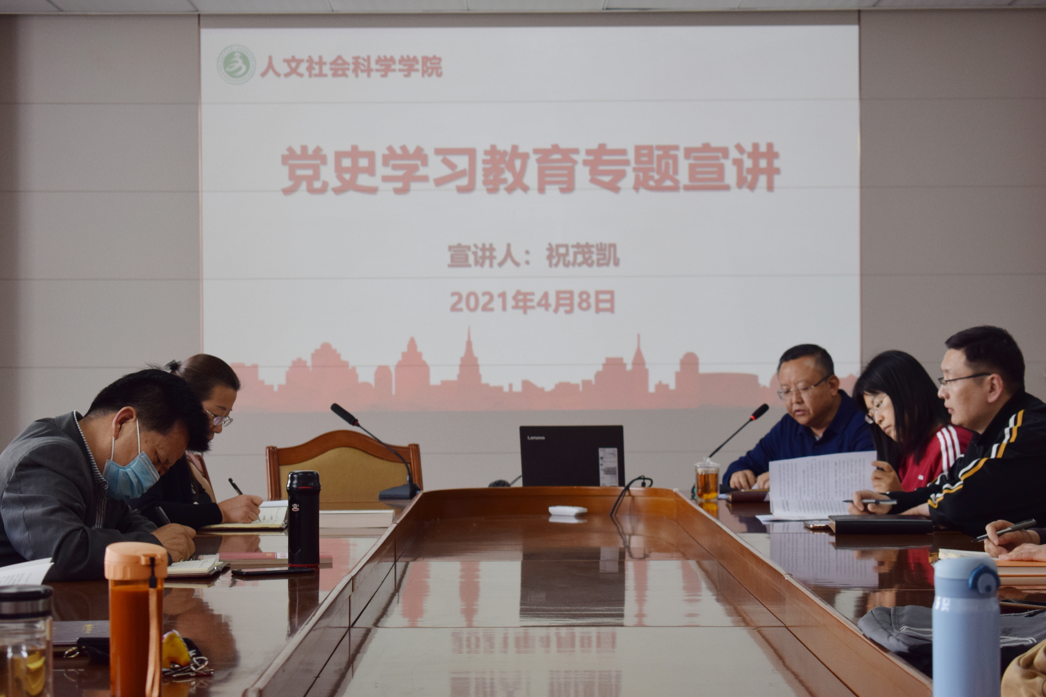 4月8日,青岛农业大学人文社会科学学院党总支书记祝茂凯为全体教工进行党史学习教育专题宣讲。