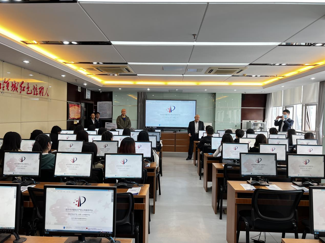 活动开始,知识产权公共服务平台相关负责人对全体师生的到来表示欢迎,平台支部书记介绍了平台党建统领,开展服务的理念和团队培养模式。随后,全体师生在志愿者的带领下,参观了平台专利代办服务大厅、政务服务大厅、专利走廊、知识产权长廊等功能区域,学生们身临其境地感受了专利受理、商标注册等窗口服务工作。最后,全体师生参加平台“知识产权课堂”,志愿服务团队重点介绍了青岛市知识产权(运营)公共服务平台、中国知识产权远程教育青岛分站服务资源及使用方法,帮助学生们提升对知识产权的认识,了解如何高效便捷使用“一站式”知识产权公共服务工具资源,提升知识产权实操能力。