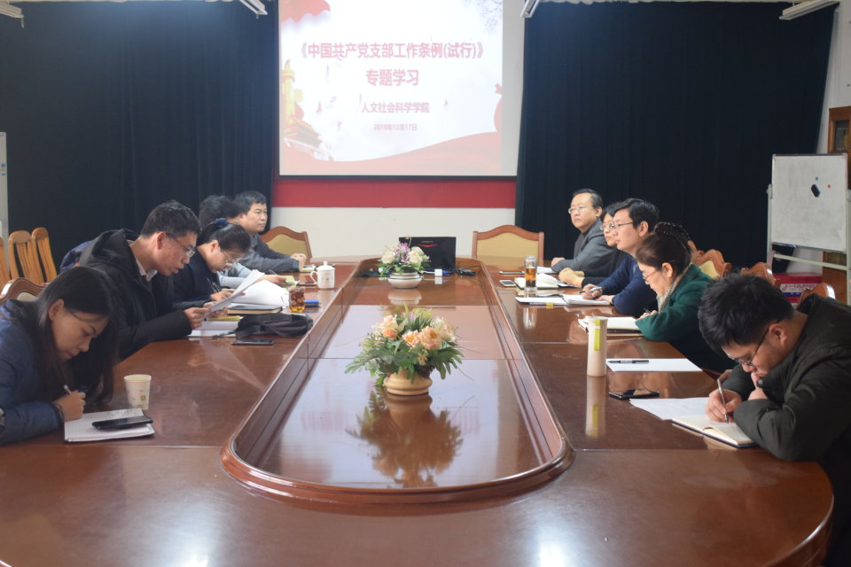 12月17日,青岛农业大学人文社会科学学院开展《中国共产党支部工作条例(试行)》专题学习。学院党总支全体成员及各党支部书记、委员与会。本次专题学习由党总支副书记、副院长张胜芳主持。