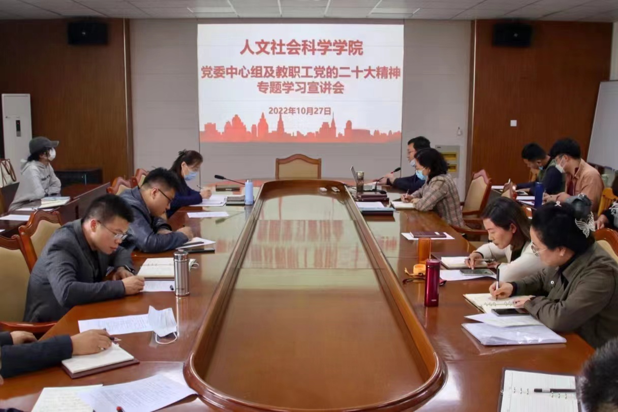 10月27日,青岛农业大学人文社会科学学院召开党委中心组及教职工党的二十大精神专题学习宣讲会,由党委书记徐以师进行宣讲,全体教职工参加。