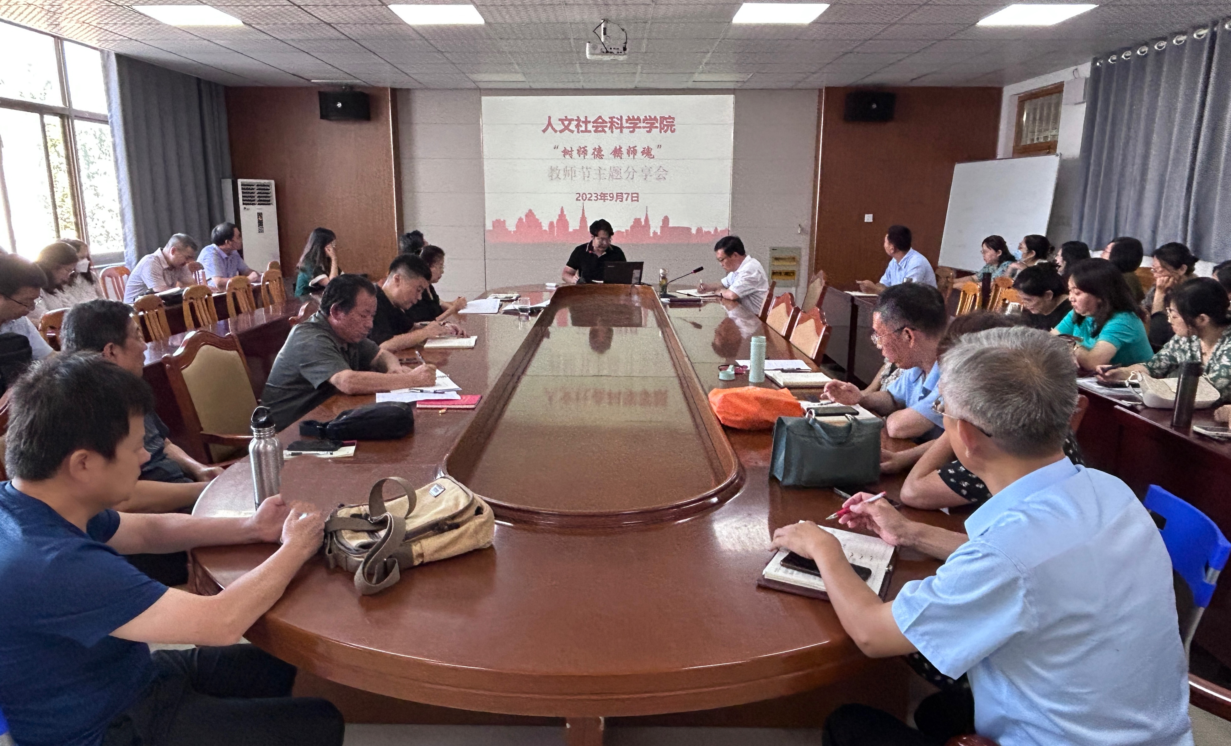 9月7日,在教师节到来之际,人文社会科学学院召开“树师德 铸师魂”教师节主题分享会。会议由学院工会胡述耀老师主持,全体教职工参加。