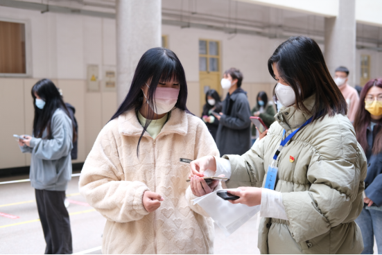 除了日常的值班工作以外,不少学生党员还承担起学院各部门分派的任务。不管是在深夜还是在饭点,只要疫情需要,学生党员们一次又一次地转发通知,通过发布信息、统计排查、上报数据,关注每一个学生的地理位置、监测每一个学生的体温、确保每一个学生的轨迹,似乎“每一个”成为了他们工作的常态,联系不上发微信、微信不回打电话、电话不通联系家长……为了这“每一个”,不遗漏这“每一个”,将928名留校学生的信息像网一样连结在了一起。学生党员谢飞是个“多面手”,疫情防控数据摸排、核酸检测、餐厅志愿服务等到处都闪现着他忙碌的身影。