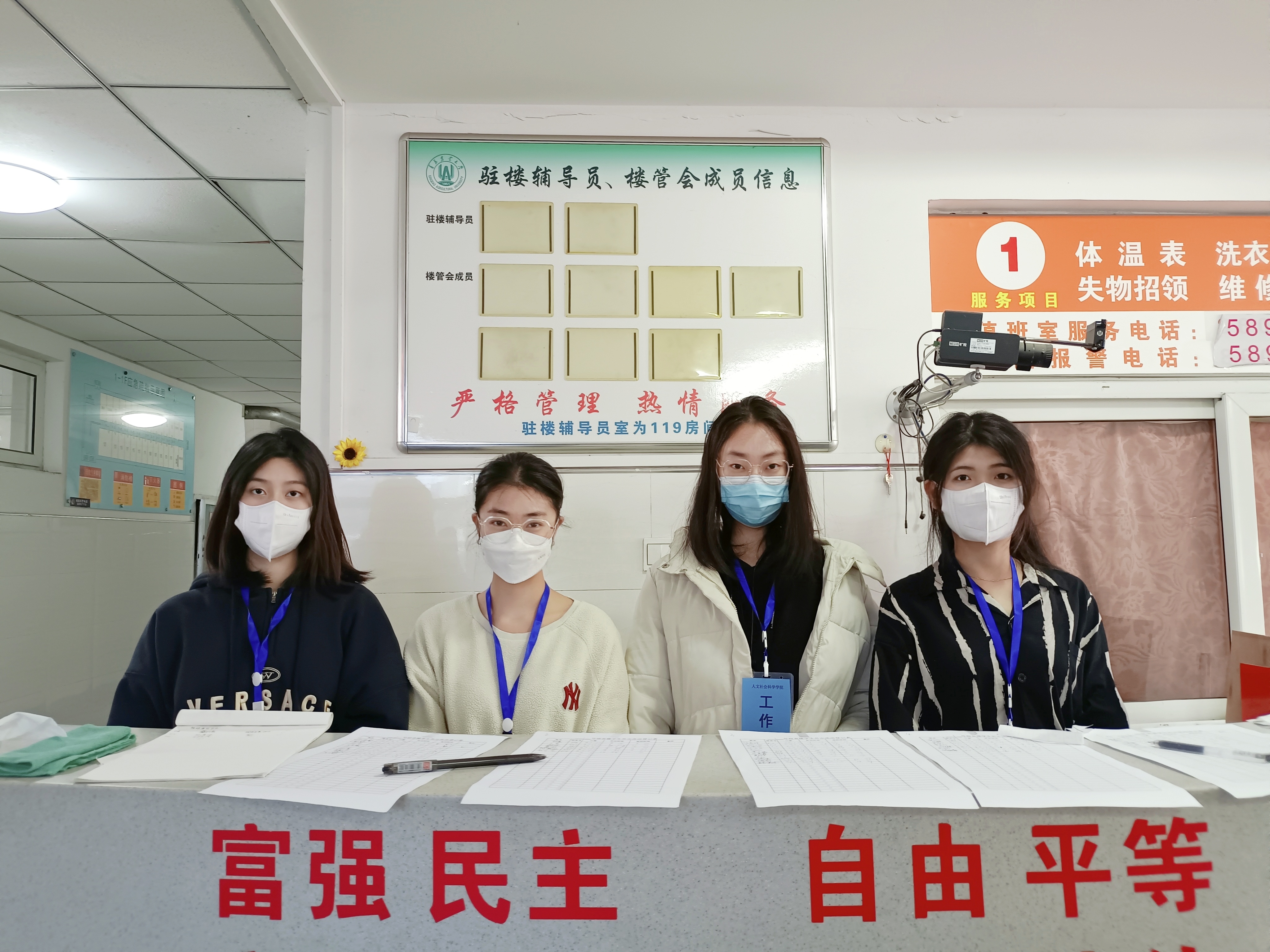根据宿舍楼封闭管理的要求,全体辅导员老师全部住楼,确保学生日常生活学习的正常开展。张胜芳老师与史雪老师一起负责东苑女生宿舍一号楼的管理。到岗后的第一天,老师们快速了解宿舍楼基本情况,架构起本楼宇的运行体系。充分发挥人文、园林、经管、艺术、农学等不同学院学生党员、入党积极分子以及学生骨干的作用,在每个楼层设立层长,创建楼宇学生骨干群,轮流值班,保证了东苑1号楼学生就餐外出、洗澡外出、夜间点名等管理工作的有序运行。