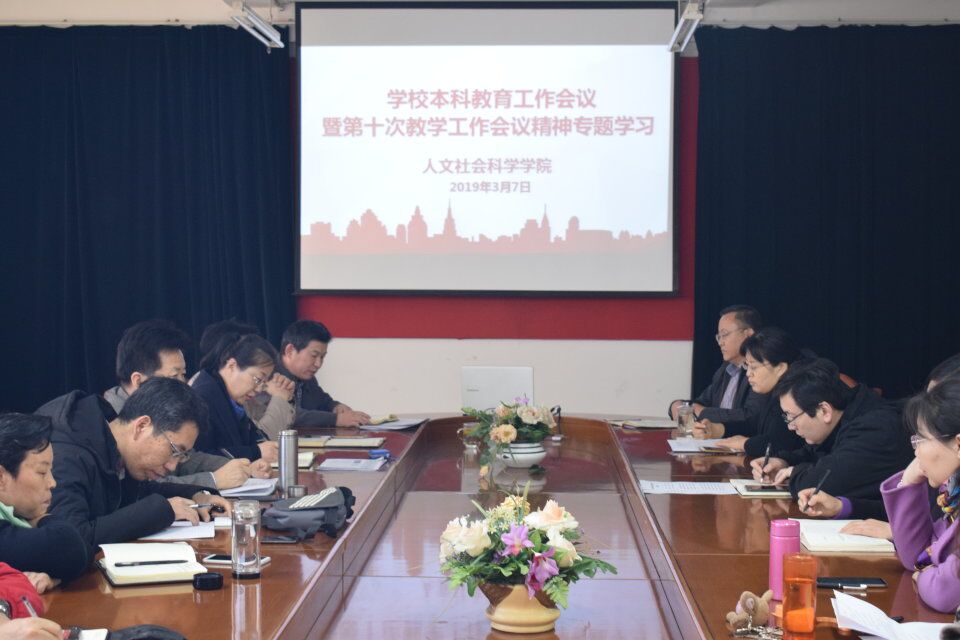 3月7日,青岛农业大学人文社会科学学院在资料室开展学校本科教育工作会议暨第十次教学工作会议精神专题学习。会议由党总支书记祝茂凯主持,全体教职工与会。