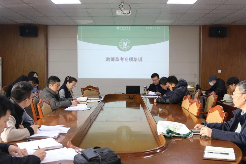 院长助理张华为全体教职工做教师监考专项培训,传达师德师风考核工作通知,梳理期末考试组织及毕业生相关工作。
