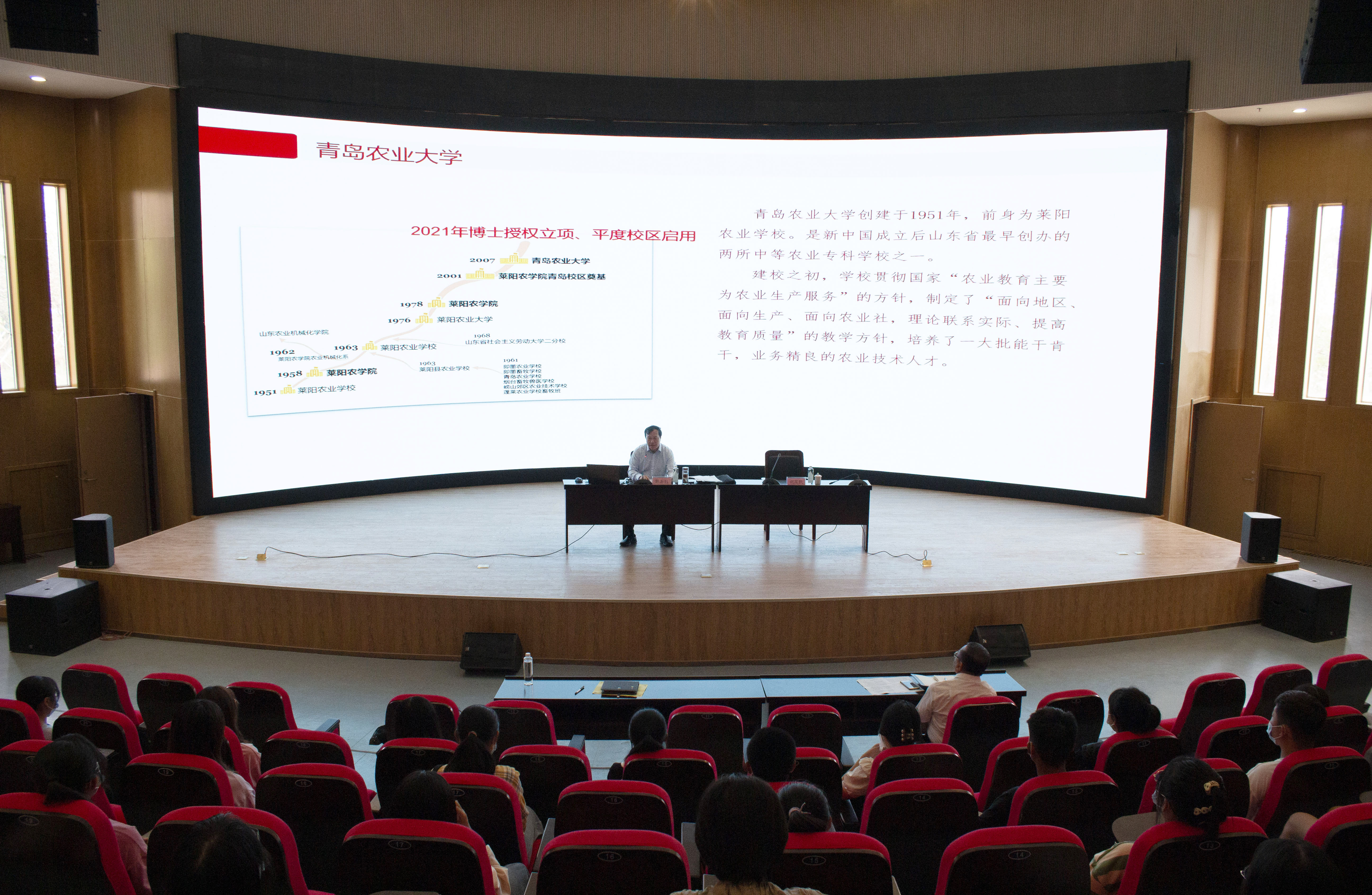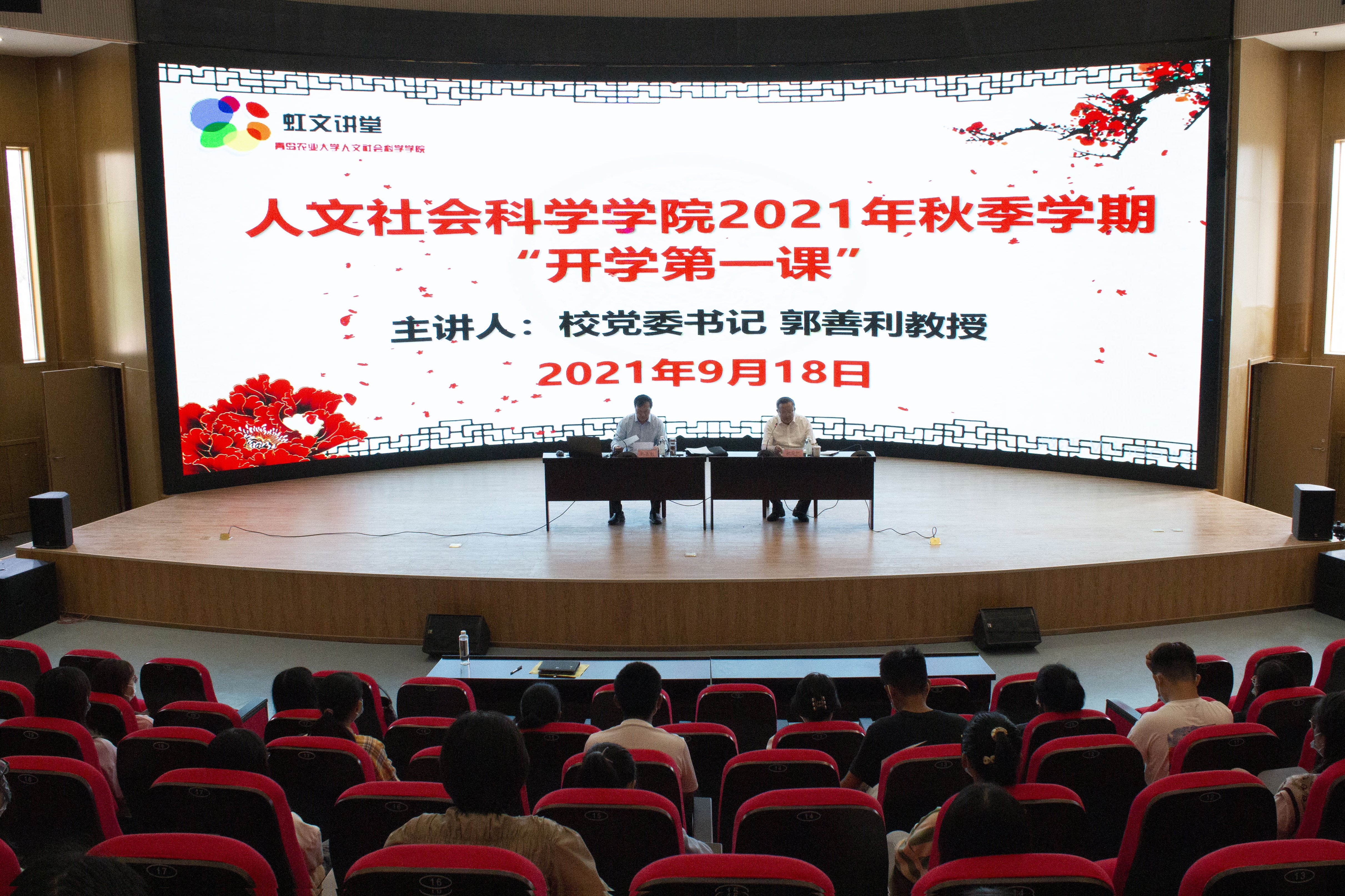 9月18日上午,青岛农业大学人文社会科学学院2021级新生开学第一课在平度校区明德楼报告厅举行,校党委书记郭善利以《青春向党 ,强国有我》为题为2021级新生上开学第一课。学院部分教师及2021级新生参加了第一课学习。第一课由学院党总支书记祝茂凯主持。