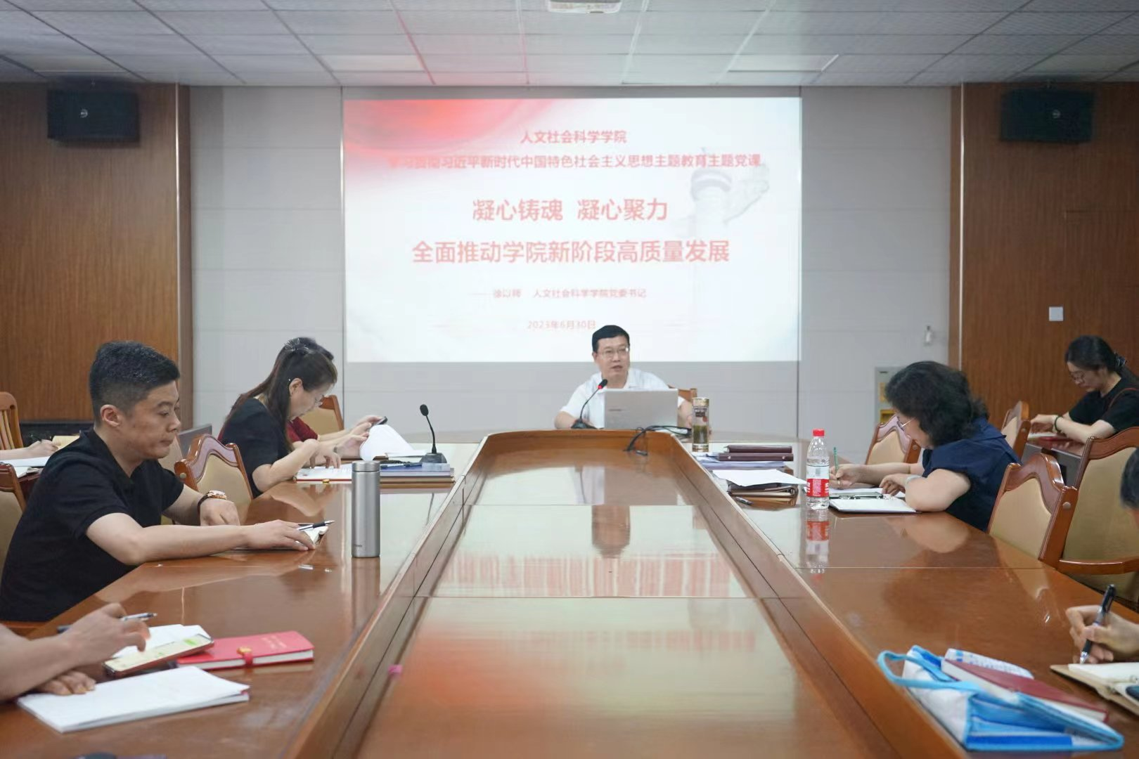 为深入开展主题教育,全面推动学院发展,6月30日,人文社会科学学院党委书记徐以师为全体党员教师作“凝心铸魂 凝心聚力 全面推动学院新阶段高质量发展”专题党课。