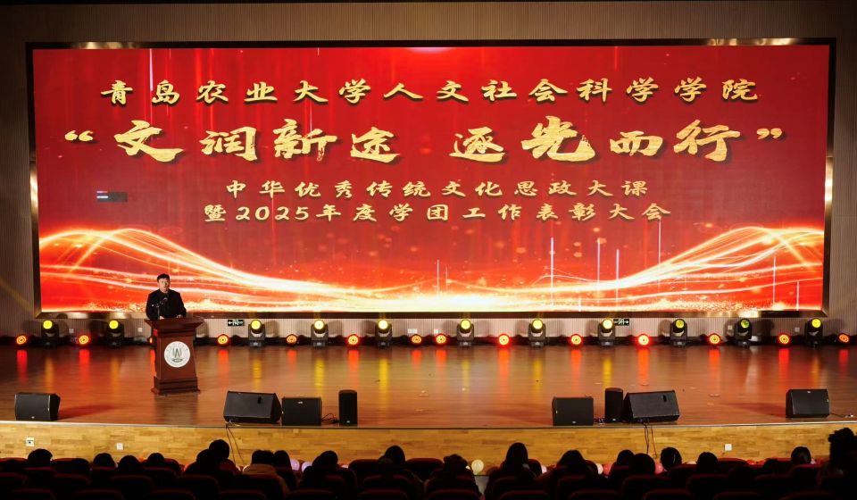 12月17日,青岛农业大学人文社会科学学院举行“文润新途,逐光而行”中华优秀传统文化思政大课暨2025年度学团工作表彰大会。副校长孟晓军、学生工作处处长杨凯、平度校区党委副书记、管理办公室主任王国辉、农业传播与教育研究院(齐民书院)院长周维维、校团委书记刘琨出席活动,学院党政班子成员、师生代表参加。
