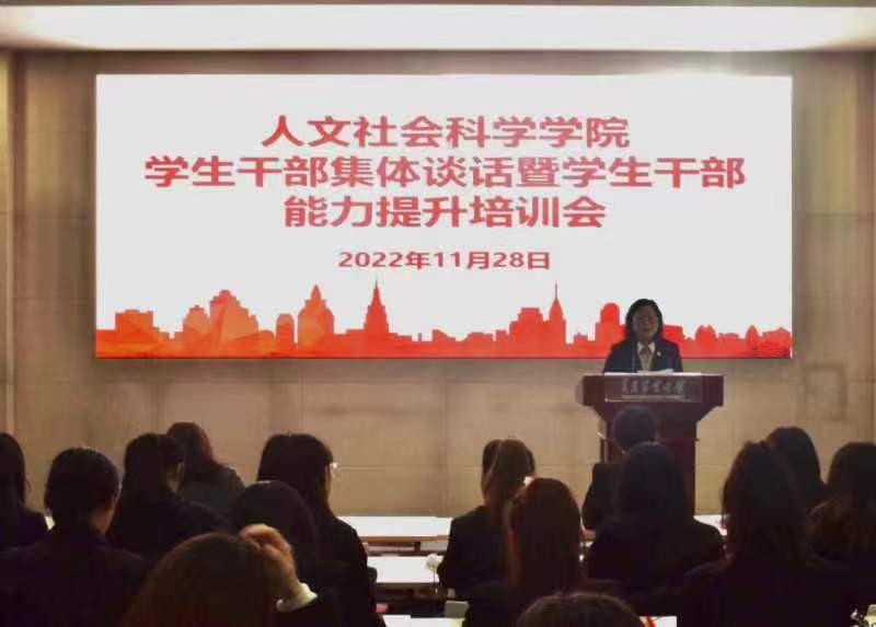 11月28日,人文社会科学学院召开学生干部集体谈话暨学生干部能力提升培训会。会议由党委副书记、副院长王敬主持,2022届学生会、学生事务服务中心、学工助理办公室及艺术团全体学生干部参加会议。