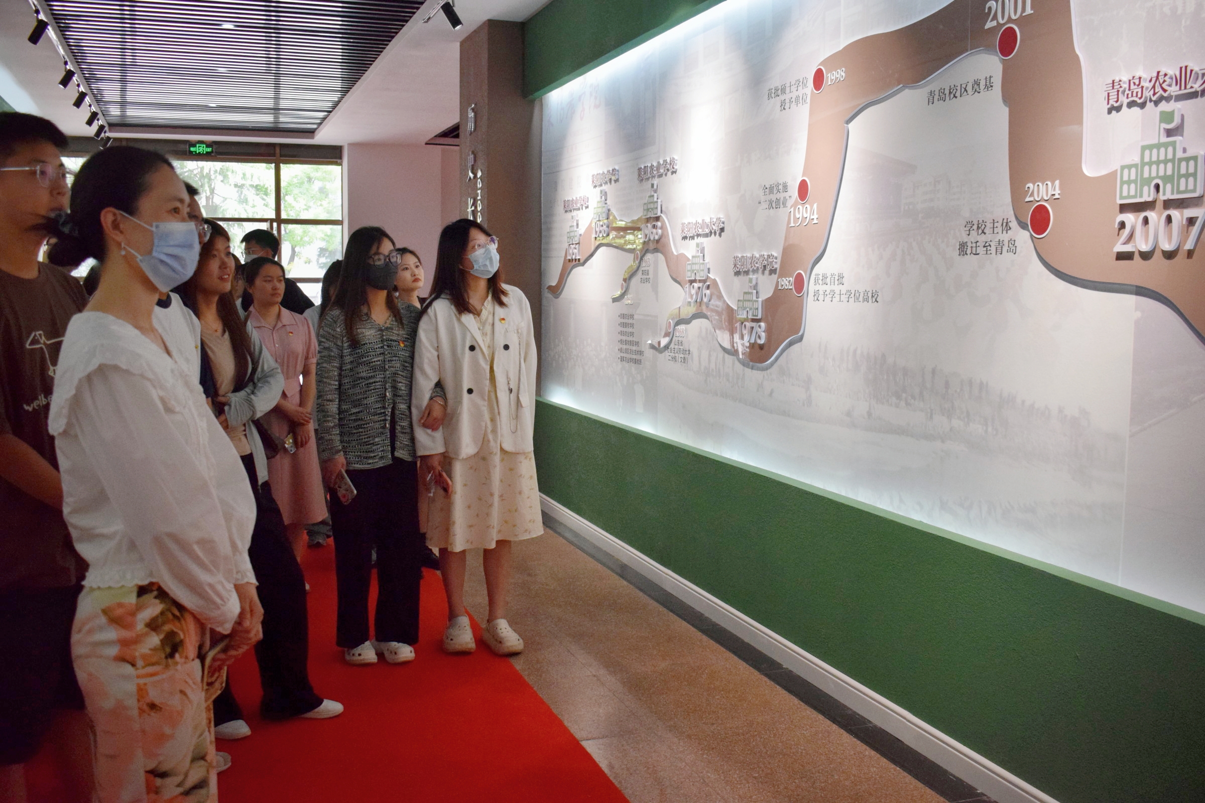 在校史馆讲解员的引导下,同学们从《青岛农业大学赋》展开此次参观。参观过程中,讲解员为同学们梳理了学校建校70多年来发展的历史脉络,并用生动的语言带领同学们一起重温了每一辈青农人的艰辛奋斗史和丰富的荣誉史。跟随着讲解员的介绍,一幕幕满载历史回忆与成绩的画卷真实生动地呈现在同学们面前;一张张图片,全面展示了学校建设的精神风貌和杰出成就。讲解结束后,同学们自行进行参观,领略学校的风采。
