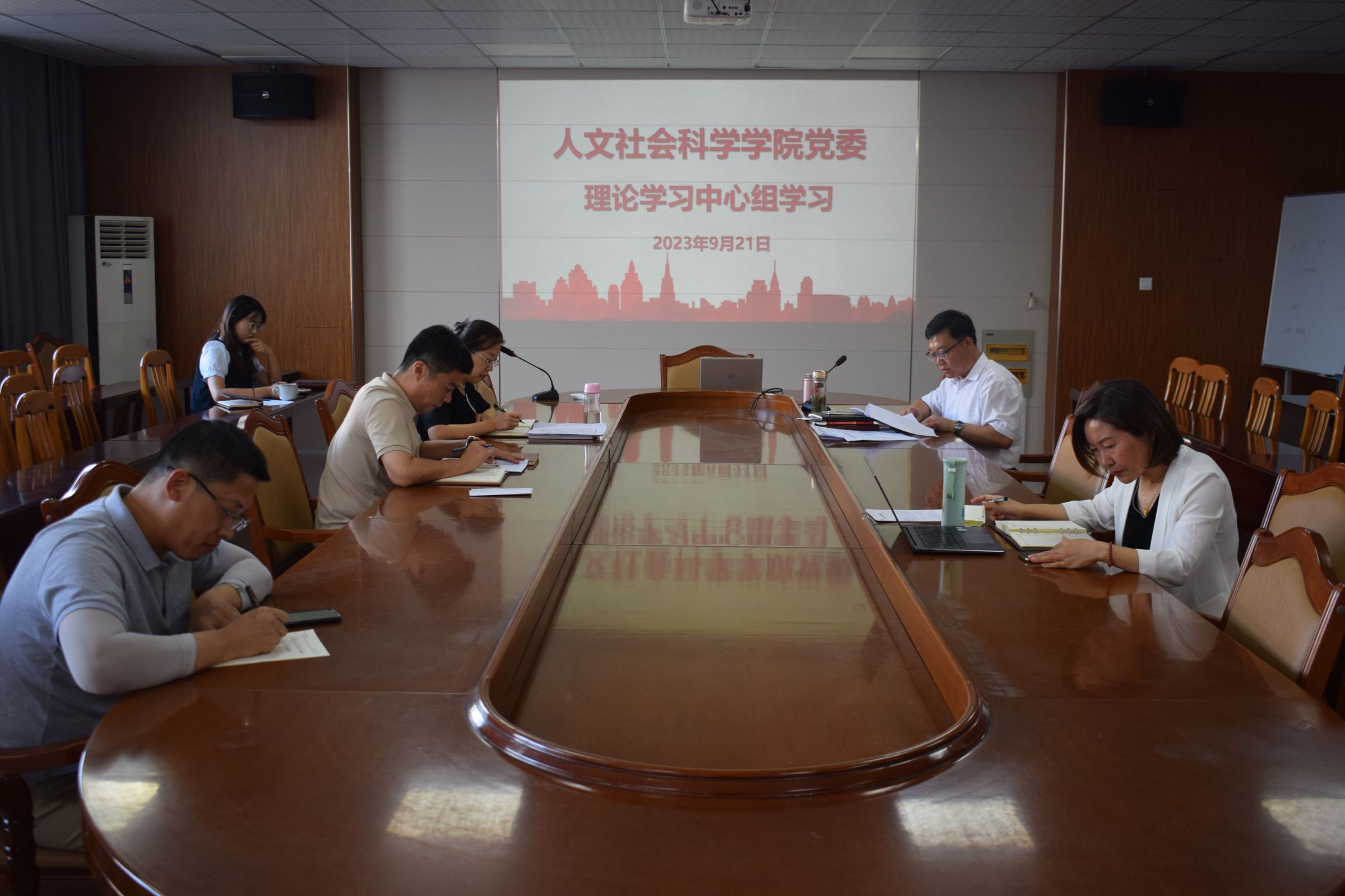 9月21日,人文社会科学学院开展党委理论学习中心组学习,专题学习习近平总书记关于发扬伟大斗争精神的重要论述、统一战线理论政策、民族宗教政策。会议由党委书记徐以师主持,全体党委委员参加。
