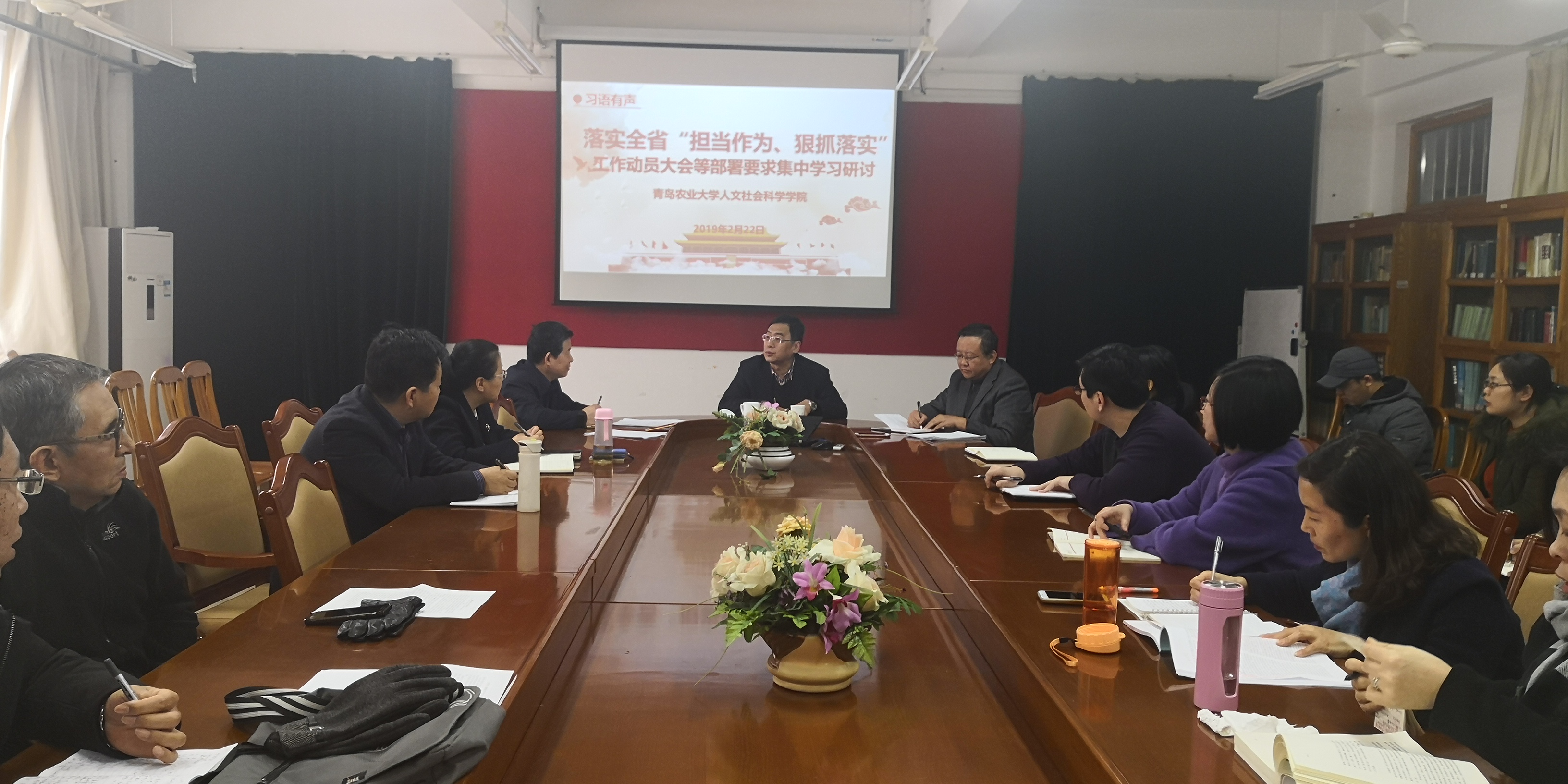 2月23日下午,校党委副书记王庆军为人文社会科学学院全体教职工讲授开学第一课。会议由党总支书记祝茂凯主持,学院全体教职工与会。
