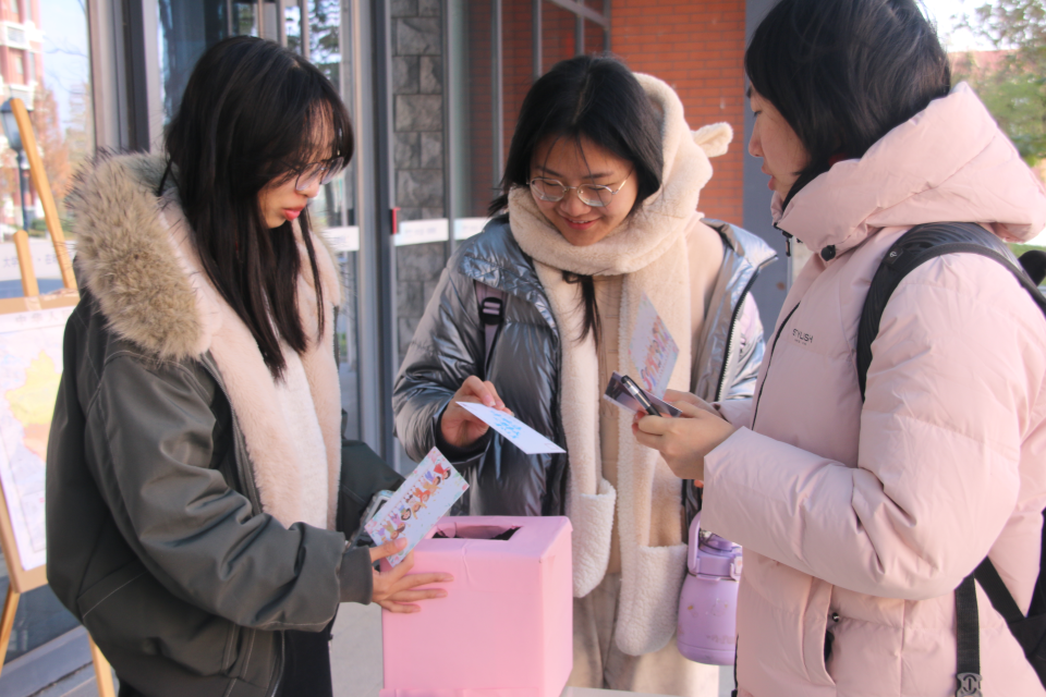 活动现场设置了梦想书写、祝福互换、城市标注、就业知识问答等多个趣味环节。同学们用彩笔勾勒出自己未来理想的模样,驻足于他人的美好祝福并为其他同学留下暖心寄语,通过星星贴纸,同学们在地图上锚定就业或考研的理想城市,为未来蓝图擘画方向。许多对未来职场有高涨的热情和期许的同学踊跃参与到有奖问答环节,通过对趣味问题的回答不仅开阔了自己对相关知识的见解,还为日后投入到职场生活坚定了充足的信心。工作人员全程用心捕捉活动的每个精彩瞬间,用镜头定格了同学们的专注与欢笑,为后期宣传总结留存素材。