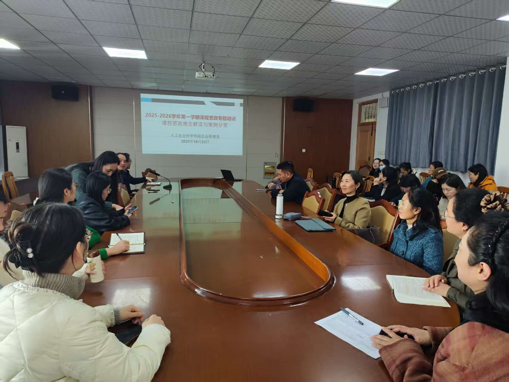 为深入贯彻落实立德树人根本任务,全面推进课程思政高质量建设,提升教师课程思政教学设计与实施能力,人文社会科学学院于2025年10月至11月组织开展了2025-2026学年第一学期课程思政专题培训。本次培训以系为单位分两次进行,第一次培训围绕“课程思政理念解读与案例分享”主题,于10月17日至10月31日陆续在各系展开,各系全体教师参与。