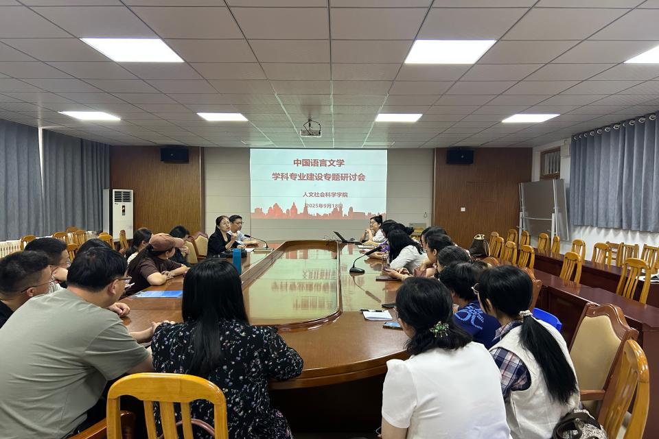 为大力弘扬教育家精神、加快建设教育强国,做好学院“十五五”规划预研、进一步明确中国语言文学学科发展方向、推动学院高质量发展,9月18日下午,人文社会科学学院中国语言文学学科专业建设专题研讨会在学院会议室举行。会议由副院长蔡连卫主持,院长云立新与中文系全体教师参加。