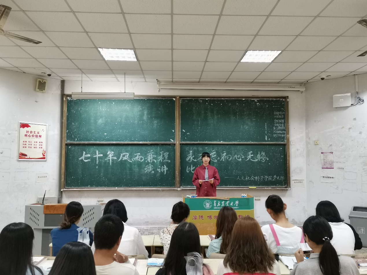 10月11日,青岛农业大学人文社会科学学院为庆祝中华人民共和国成立七十周年,特面向全院师生开展“七十年风雨兼程,永不忘初心无悔”爱国演讲比赛活动,畅谈我们与祖国的光荣与梦想。