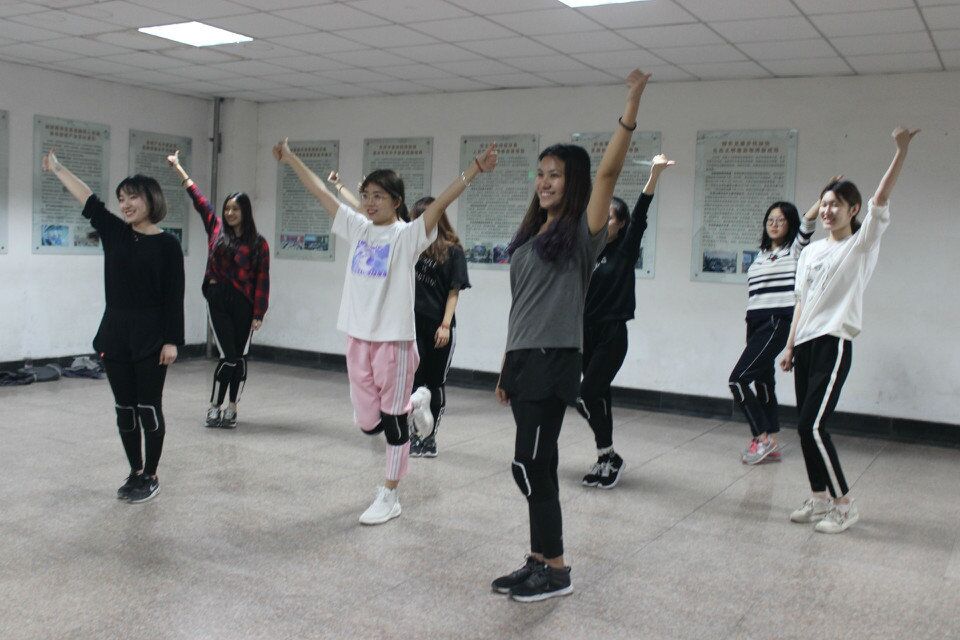 “珠缨旋转星宿摇,花蔓振作龙蛇动”,回旋、下叉、托举、滑步每一个动作干净利落。啦啦操队员们严格对待每次练习,她们用完美的舞姿展现着人文学院学子的风采,用刻苦的训练表达着她们对校运会的热情和期待,用燃烧的激情寄托着对运动健儿的期望。