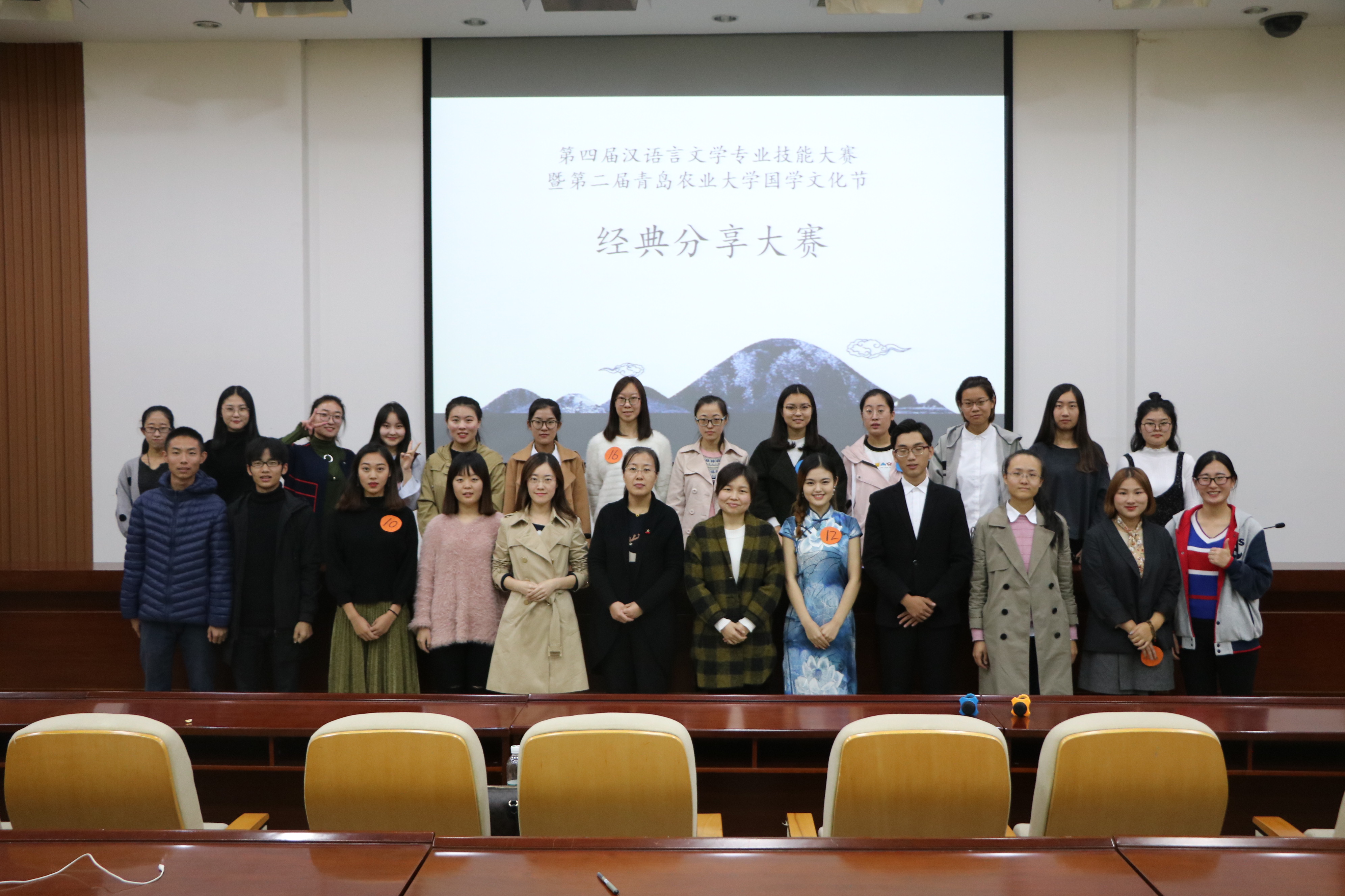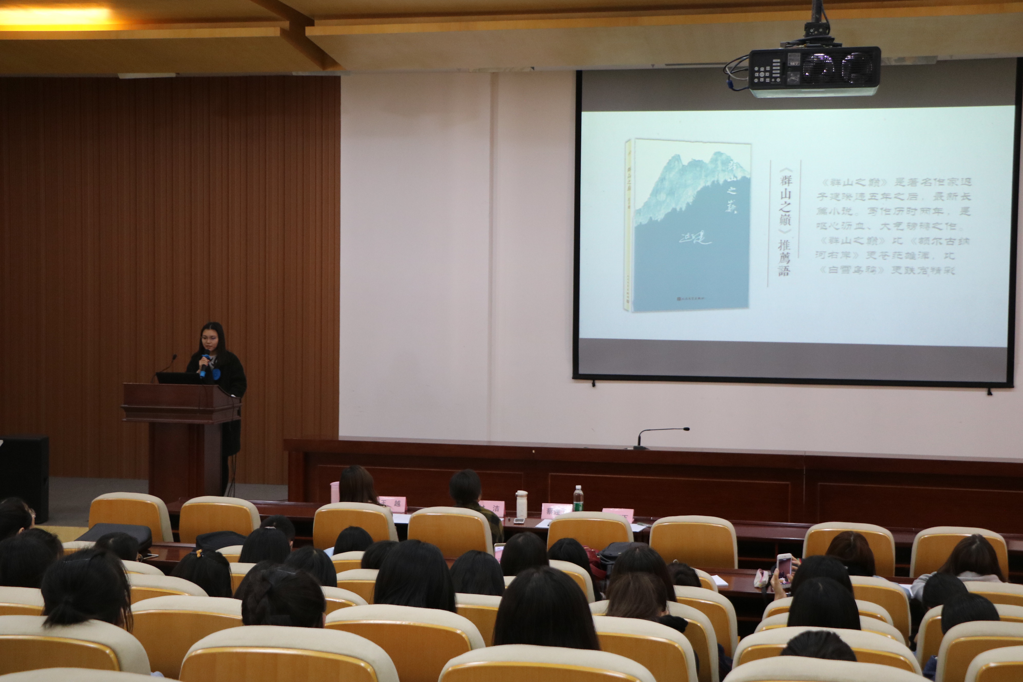 本次比赛共分为内容分析和个人展示两个环节,19位选手在本次大赛中分享了他们与不同经典作品之间的灵魂对话。“生活不是上帝的诗篇,而是凡人的欢笑和眼泪”,中文1602班孙晓然与我们分享了群山之上龙盏镇的悲欢离合,更在对书中角色的点评中体现着对生活的思考。中文1602班王丹用典雅的辞藻讲述中国古乐器的历史与传承,将奏响千年的古乐器之美呈现得淋漓尽致。比赛现场气氛紧张而活跃,参赛选手充分展现出了自己对作品的深入理解和多方面才情,观众反响热烈,现场掌声不断。经过激烈比拼,共有14名同学分获一、二、三等奖及最佳组织奖。比赛间隙,中文专业的杜舒婷同学和孙怡馨同学带来歌曲《那些花儿》和《芊芊》,也使得全场掌声迭起,气氛热烈。