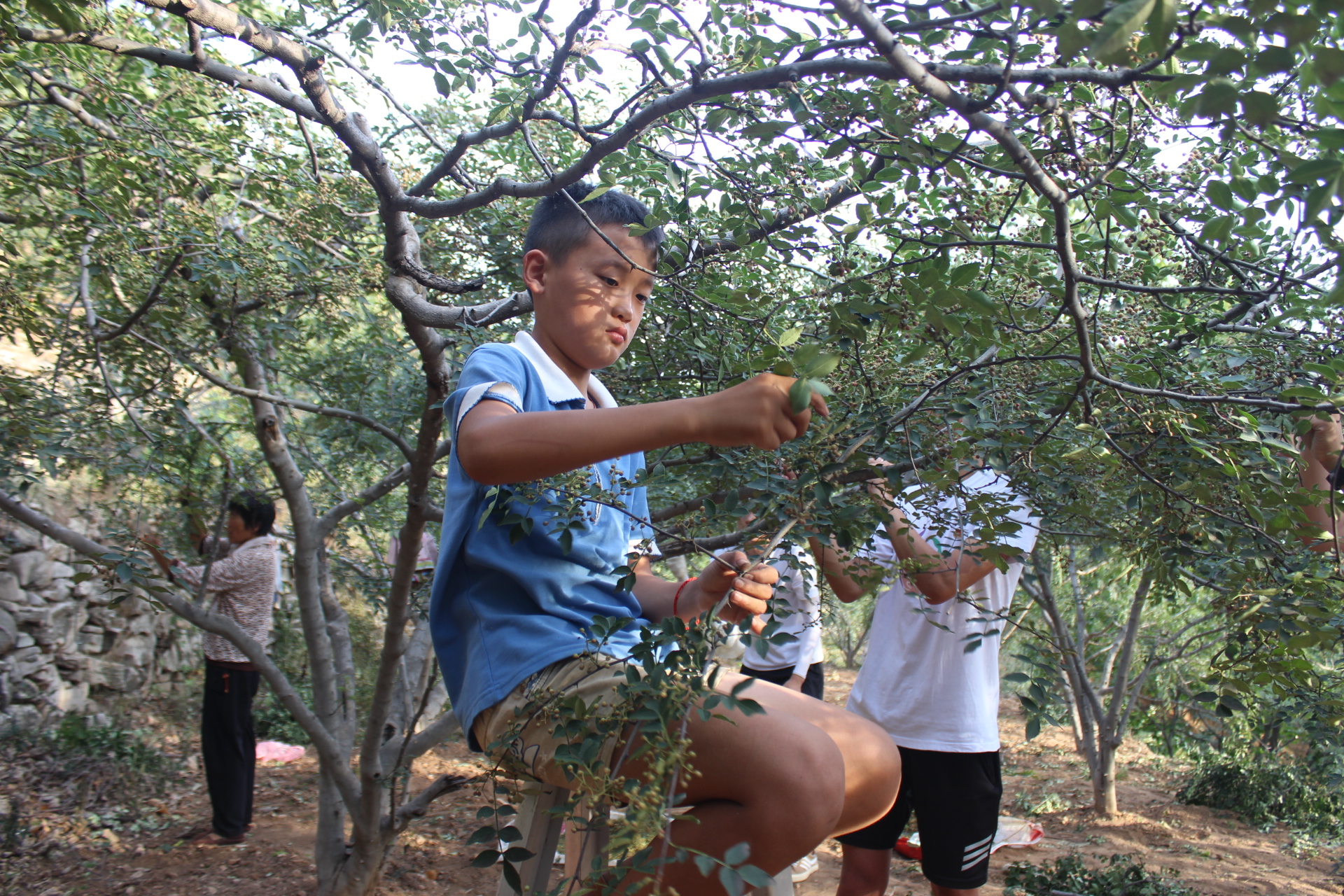 实践队员在奶奶的悉心指导下,很快上手了花椒采摘工作,花椒树的枝丫间都是刺,一不小心就会扎到手,树上的蚂蚁很多,个头很大,实践队员没有丝毫娇气,不怕苦不怕累,深入花椒地与奶奶一起采摘花椒。每一次弯腰起身,豆大的汗珠从脸上滴落,队员们依然细心采摘每一颗花椒,采摘工作持续了一下午,看着自己亲手摘得花椒,队员们露出了会心的微笑。
