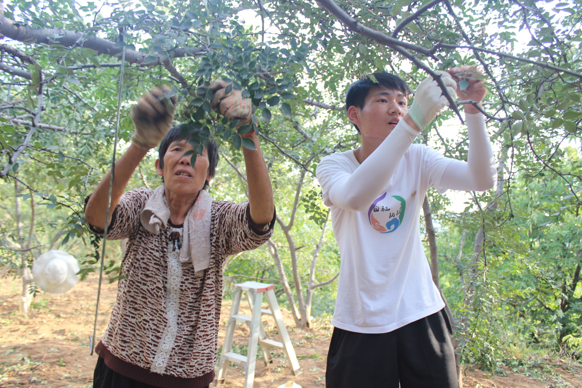 鸡鸣破晓,山坡中已是一幅热闹的景象,实践队员一行出发,走过弯弯的山路,在一路打听下来到芮庄村,村里的小路很窄,蜿蜒而上,实践队员观察到花椒树下农忙的农民大多是年岁已高的老人,走近了解到,当地的年轻人多在外地打工,因此家里的农活多由老人承担。出乎实践队员们意料的是,村民们并没有想象中的落寞,反而眉眼间都流露出满满的幸福感。“出生在一个好时代,趁年轻就得出去闯一闯,我们会支持全力他。”芮爷爷笑着说。