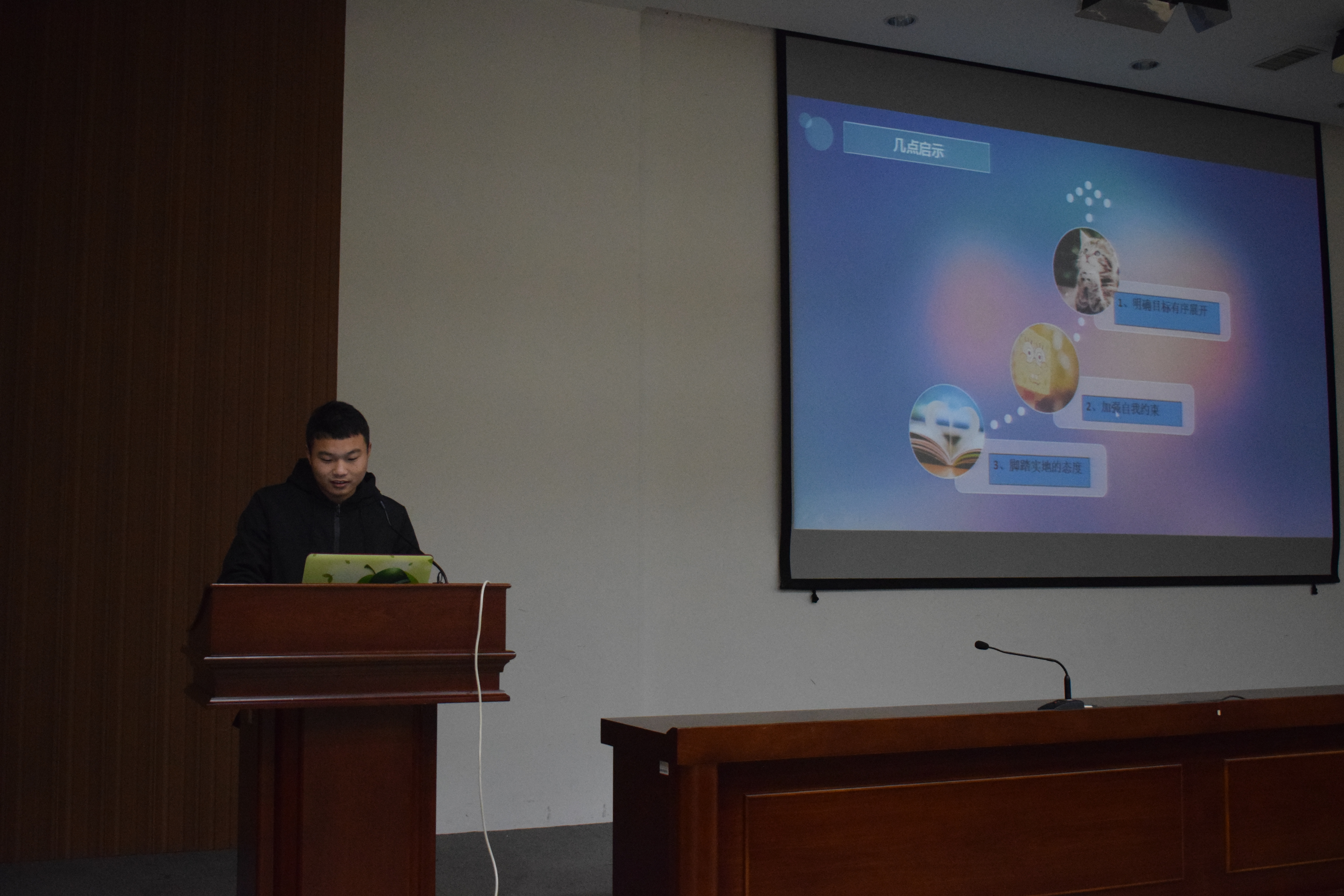 国家奖学金获得者、院2016届学生会新媒体中心副主任、1401班的路庆书分别从工作经历、学习方法、生活经验三个方面分享了自己的大学生活,指出要明确目标,加强自我约束,脚踏实地的努力,同时要正视自己与他人,学会以他人之长,补己之短,希望在座的同学们在以后的学习生活中总结出适合自己的方式。
