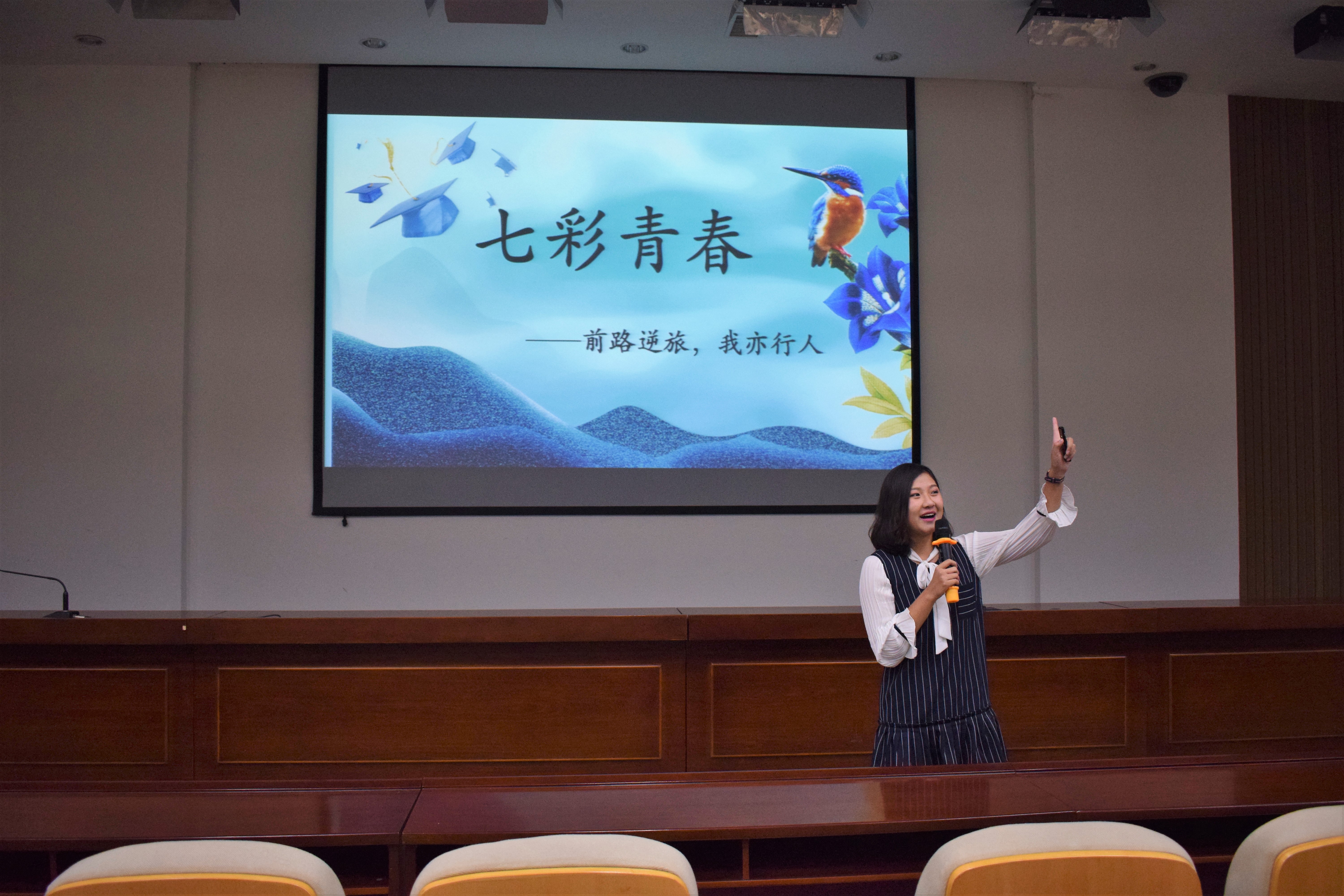 社会实践国家级奖项获得者、学院17届学生会主席、公管1503班的程译萱用彩虹的七色向我们展示了她在大学的成长经历。“先跟跑,再领跑”、“学有乐,专所学”、“行万里”……一种颜色,一种成长。她以自身经历告诉同学在大学中要保持学习的积极性,制定一个目标并为之奋斗;明确自己的爱好和专长,并将兴趣爱好应用于工作生活中;多参加社会实践,看看外面的世界,也发掘不一样的自己……经验多多,使人受益匪浅。