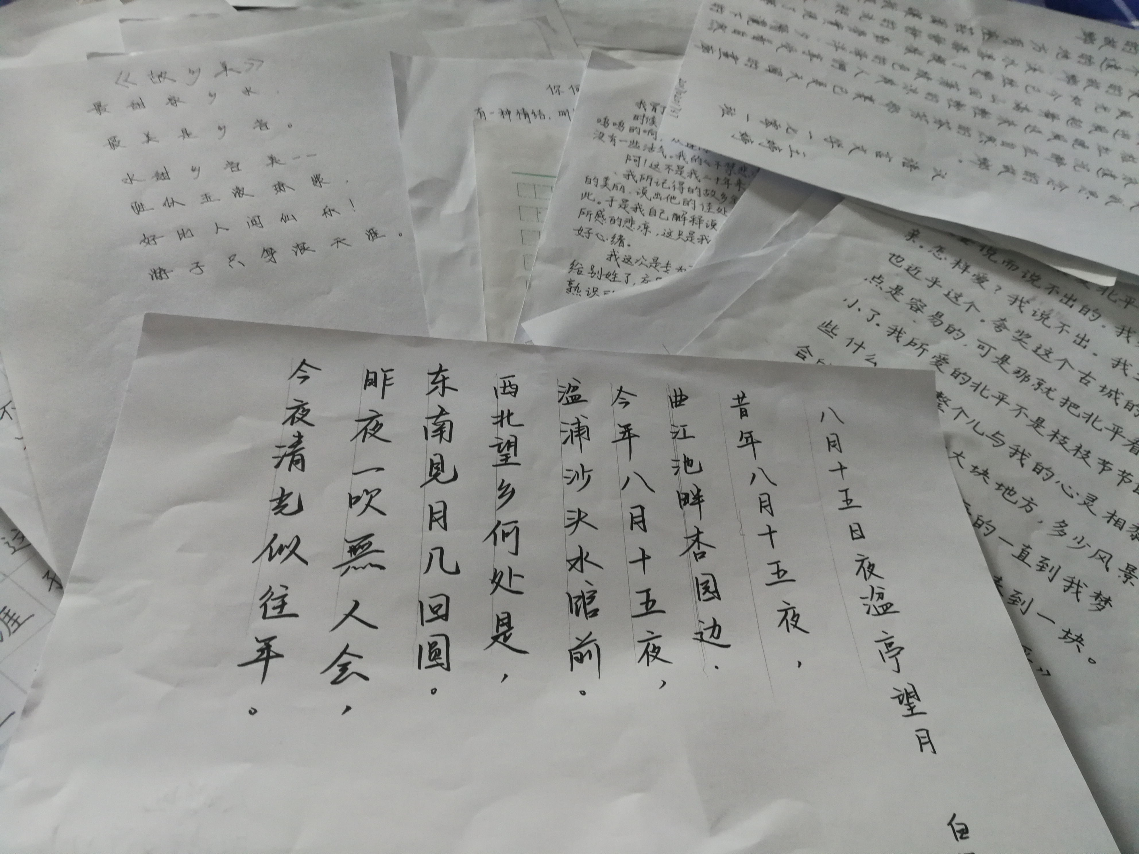 活动要求同学们用软笔或硬笔在纸上写下自己对家乡的思念之情或者赞颂家乡的诗文。学院同学积极参与,用细腻的笔触表达出自己对家乡的热爱之情。秘书1602班的胡洁同学写下辛弃疾的千古名句:“众里寻他千百度,那人却在灯火阑珊处”,抒发了自己浓浓的思乡之情。公管1703班的李金燕同学通过书写老舍先生的《济南的冬天》,向大家展现出了一个有山有水有太阳的济南城,表达出了自己对家乡的喜爱和自豪之情。