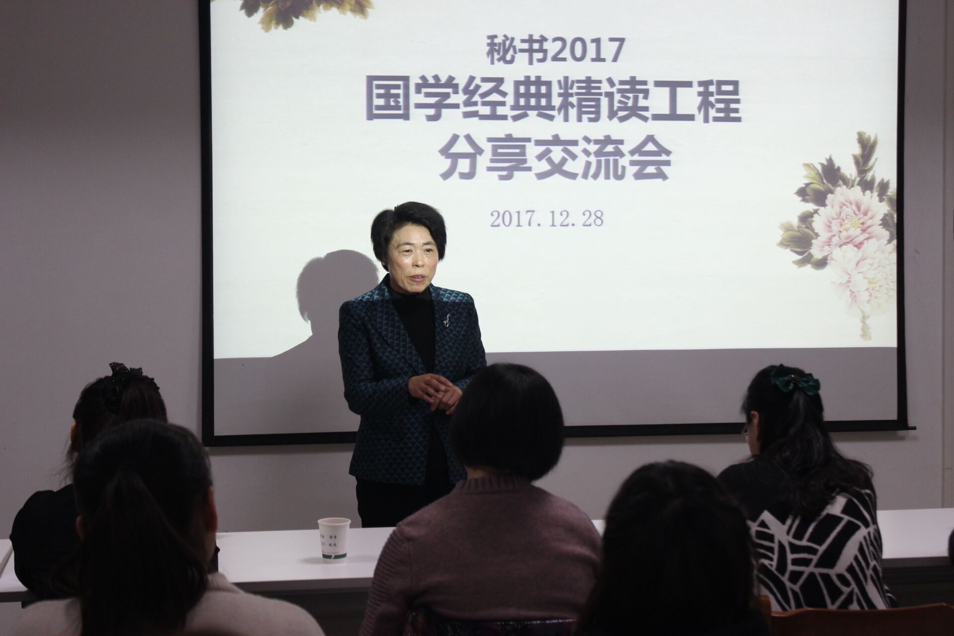 刘明瑛与老师和同学们分享了自己学习传统文化的收获:第一,提高了认识问题的能力。通过学习《论语》等传统文化经典,自己对很多问题的认识由朴素的感情层面上升到了理性认识层面;二是对工作有很大帮助,作为纪检干部,传统文化经典给予了很多工作上的启发;三是提高了生活的幸福感,通过学习传统文化,价值观更加正确了,对党对组织的忠诚度更高了,心态更加平和。