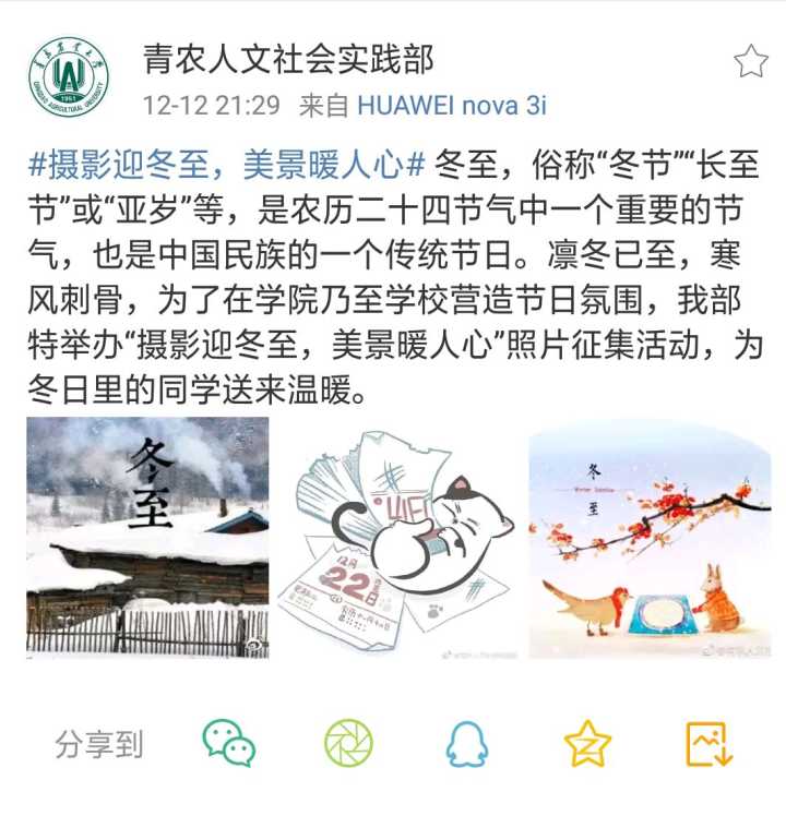 12月22日,青岛农业大学人文社会科学学院成功举办“摄影迎冬至,美景暖人心”主题照片征集活动。