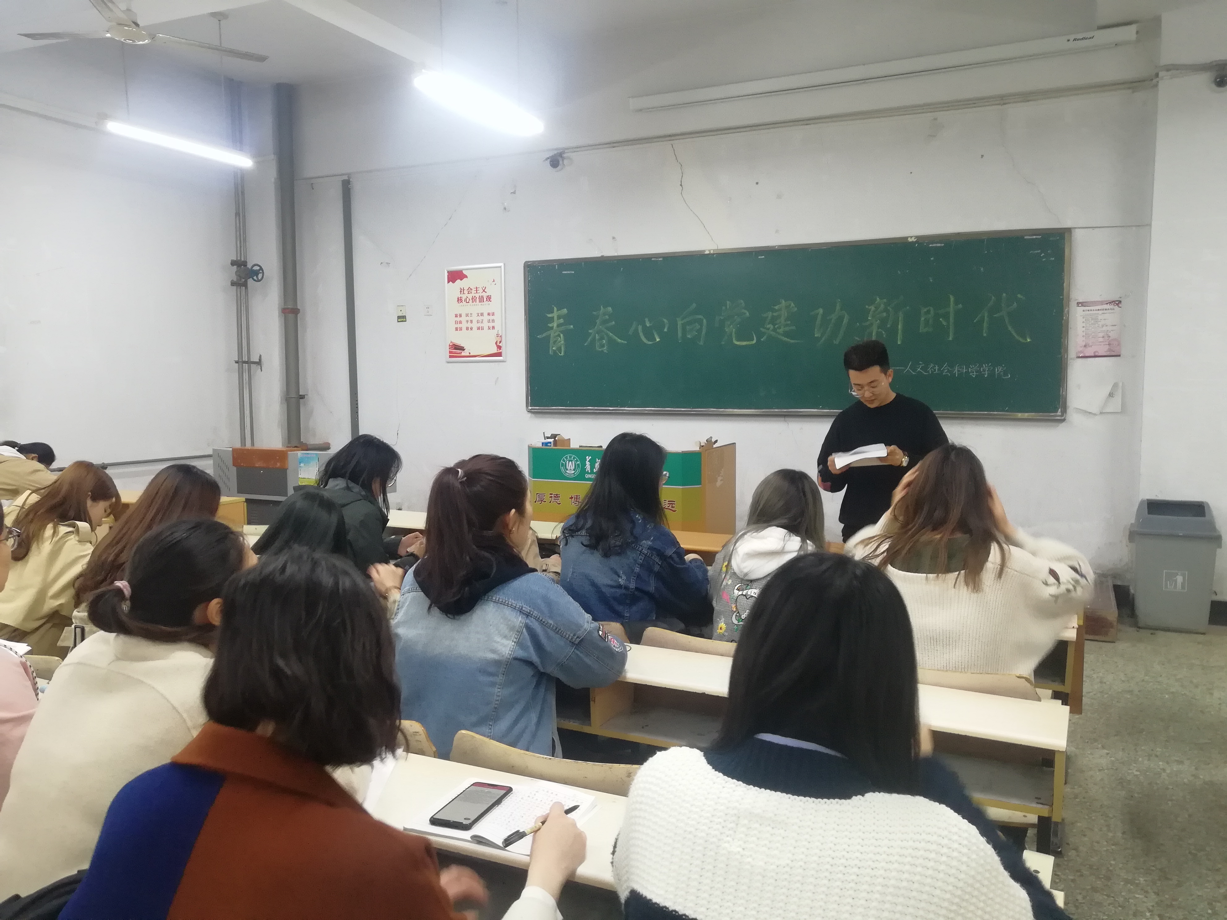 为了贯彻落实团日活动要求,唤起大家入团时的激情与信念,各团支部组织团员集体宣誓,重温入团誓词。汉语言文学1701班全体起立,庄严而又神圣,“我志愿加入中国共产主义青年团”的誓词久久在教室里回荡,坚定慷慨的宣誓唤起了全体团员对于民族和国家的自豪感和荣誉感。