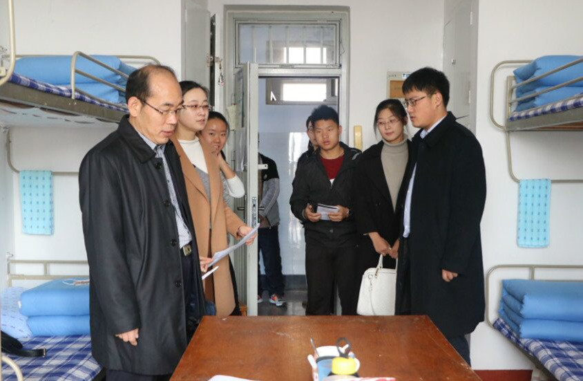 11月11日,人文社会科学学院党委书记王仁高及辅导员曹斯亢、张馨走访学生宿舍,进行宿舍安全、内务检查。