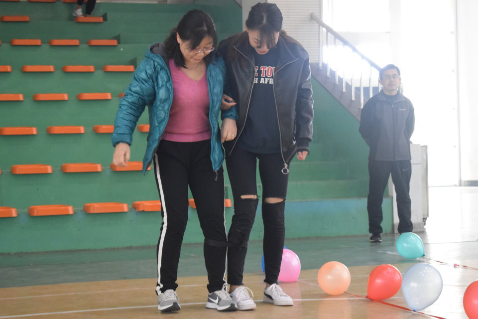 比赛伊始,老师们就已在场下跃跃欲试,比赛过程中,老师们更是一改平日“端庄稳重”的形象,变身“运动场能手”,步履稳健、动作敏捷、体态轻盈,将现场氛围带至高潮。“沼泽战友情”项目中,老师们两两组队,并排站立,互揽胳膊、绑紧双腿、齐心并行、共赴终点,默契十足;“乘风破浪”项目中,老师们压低重心、全神贯注,灵活控制着杆的力度,使球平稳滚动,向终点前行;“孤胆英雄”项目中,老师们手握球拍、平稳跑动,使球稳稳立于球拍之上,一气呵成。现场气氛活跃、精彩纷呈。