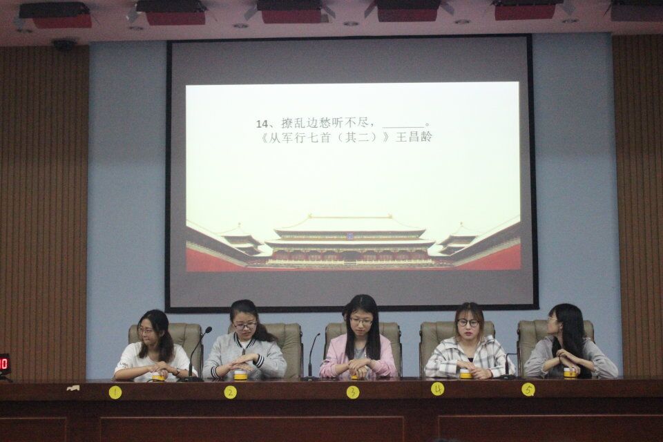 本次决赛分为“巧夺词宫”、“高楼摘星”和飞花令三个环节,大家热情洋溢、信心满满,现场气氛紧张而活跃。“巧夺词工”环节,参赛选手凭借对各类诗词的掌握,回答一气呵成,令人赞不绝口。“高楼摘星”为抢答环节,是手速的较量,更是诗词间火花的碰撞,中文1602班一连抢得四题让现场惊呼声不断,将气氛推向高潮;“飞花令”则让选手们绞尽脑汁,金句不断,最基础的“床前明月光”反而获得优势。选手们精彩的答题赢得在场评委及观众的阵阵掌声与赞许,共有12名同学分获一、二、三等奖。游戏环节从观众席随意抽选四名同学进行“飞花令”比拼,让同学们亲身感受传统文化的魅力。隋凤歌和孙怡馨带来的歌曲《但愿人长久》和《长安忆》也赢得阵阵掌声。